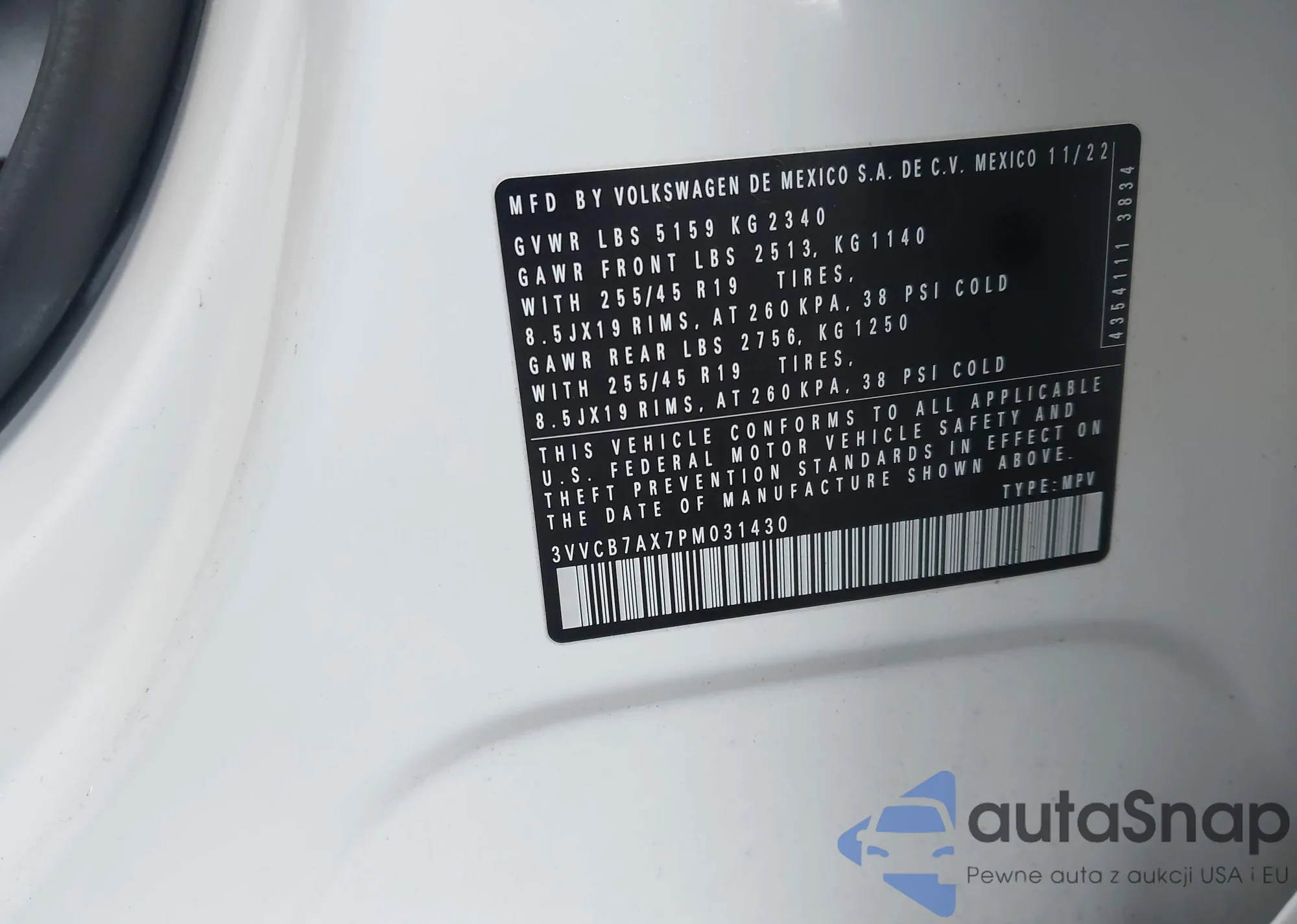 • VIN: 3VVCB7AX7PM031430