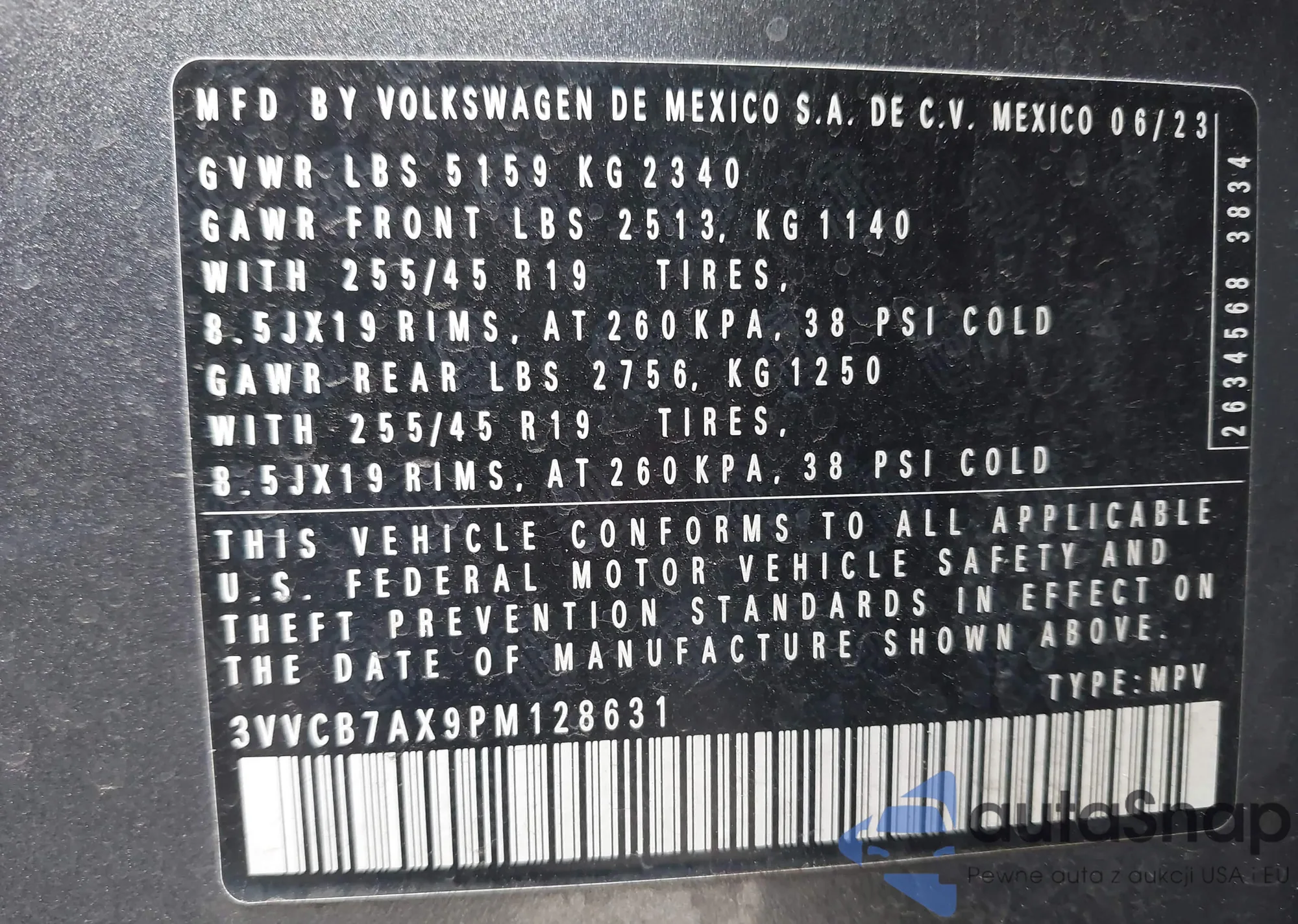 Samochód Volkswagen Tiguan 2023 (VIN 3VVCB7AX9PM128631) nie był wcześniej licytowany. Dokumenty są czyste, przebieg odpowiada lub jest niższy niż średnia rynku. Sprzedaje go firma ubezpieczeniowa – polecamy zakup. Dostawa do portu zajmie ok. 6–8 tygodni.