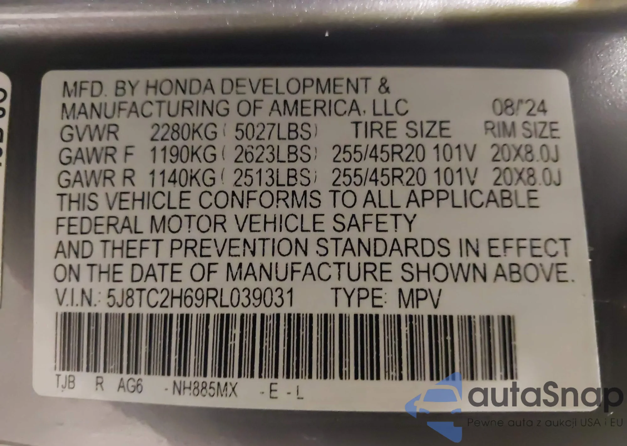 VIN: 5J8TC2H69RL039031