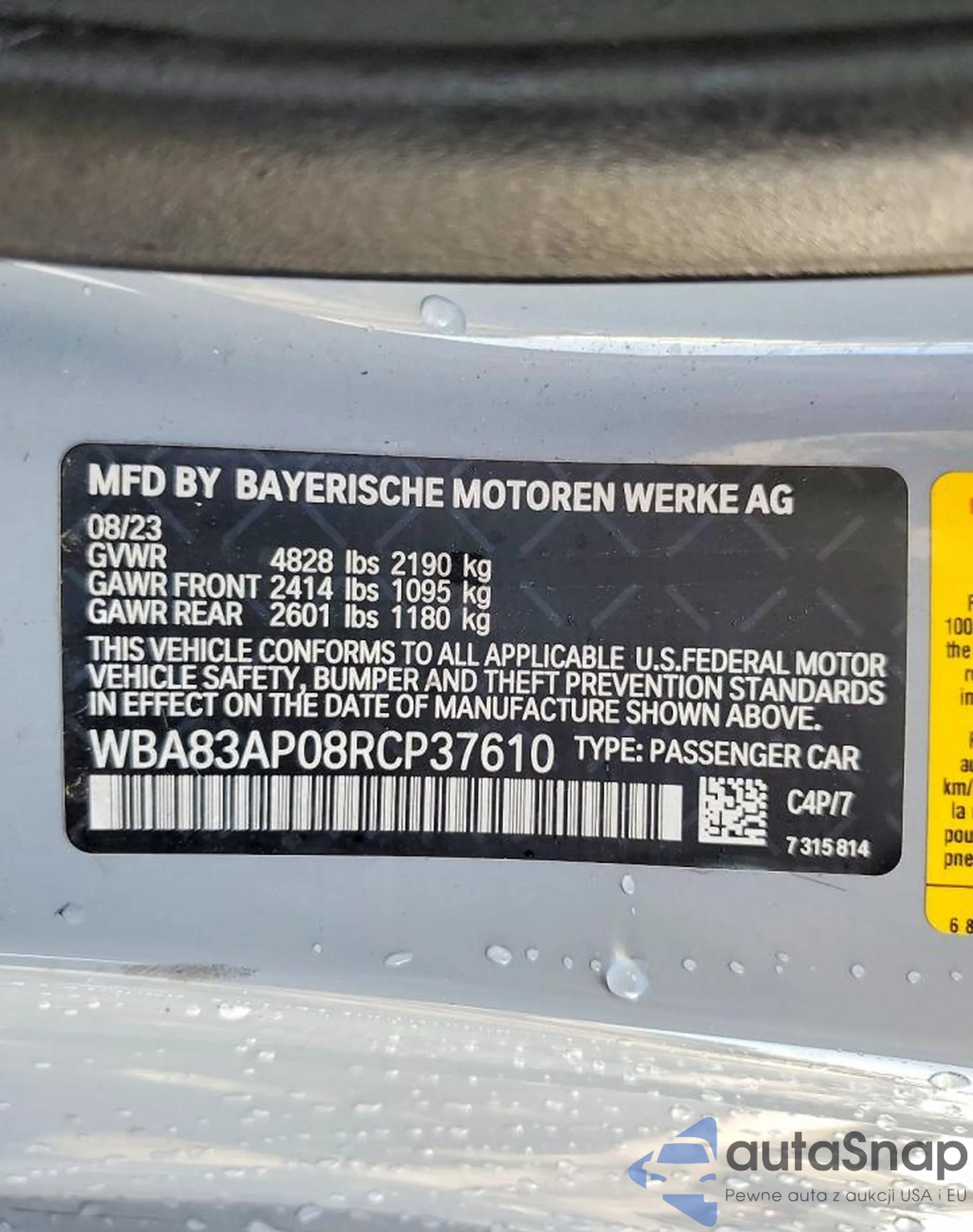 Samochód BMW 4er 2024 (VIN WBA83AP08RCP37610) nie był wcześniej licytowany. Dokumenty są czyste, przebieg odpowiada lub jest niższy niż średnia rynku. Sprzedaje go firma ubezpieczeniowa – polecamy zakup. Dostawa do portu zajmie ok. 6–8 tygodni.