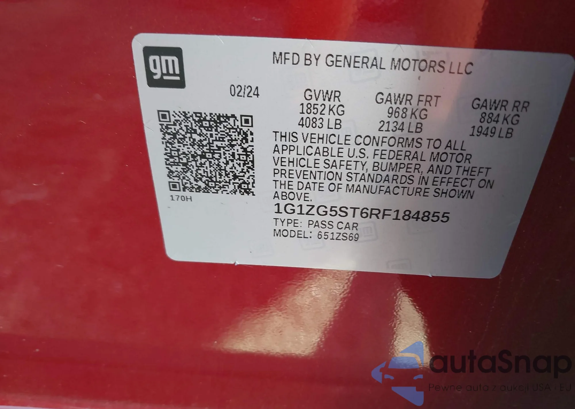 Samochód Chevrolet Malibu 2024 (VIN 1G1ZG5ST6RF184855) nie był wcześniej licytowany. Dokumenty są czyste, przebieg odpowiada lub jest niższy niż średnia rynku. Sprzedaje go firma ubezpieczeniowa – polecamy zakup. Dostawa do portu zajmie ok. 6–8 tygodni.