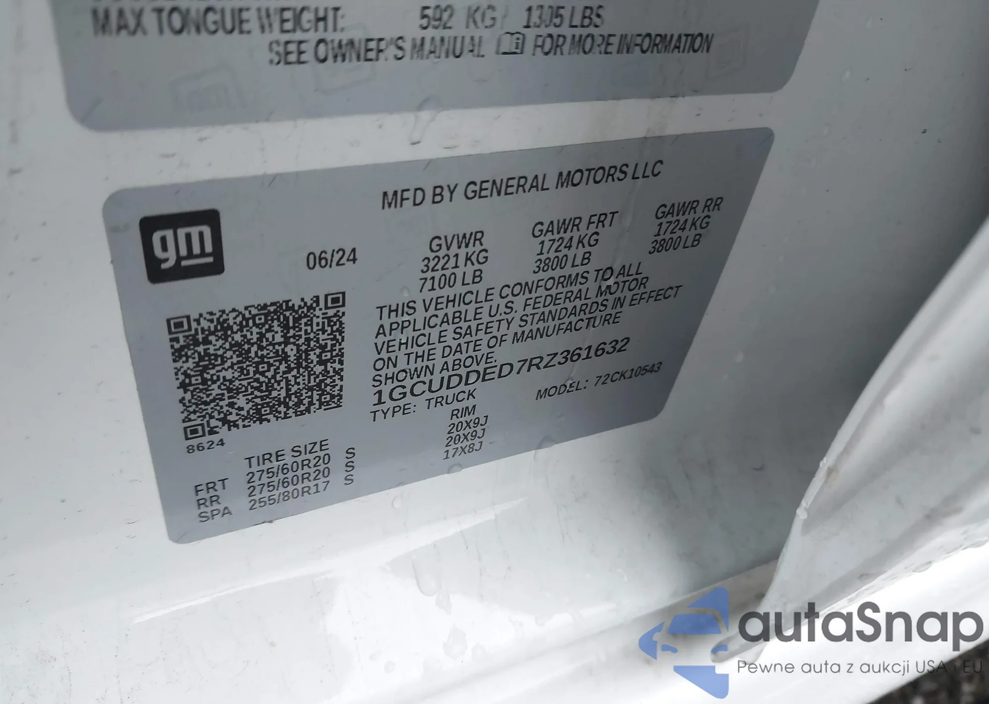 Samochód Chevrolet Silverado 2024 (VIN 1GCUDDED7RZ361632) nie był wcześniej licytowany. Dokumenty są czyste, przebieg odpowiada lub jest niższy niż średnia rynku. Sprzedaje go firma ubezpieczeniowa – polecamy zakup. Dostawa do portu zajmie ok. 6–8 tygodni.