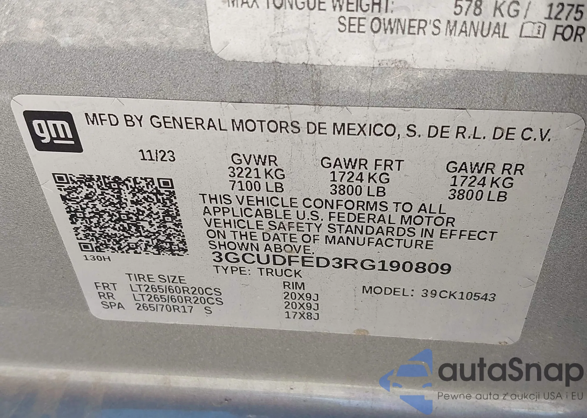 • VIN: 3GCUDFED3RG190809