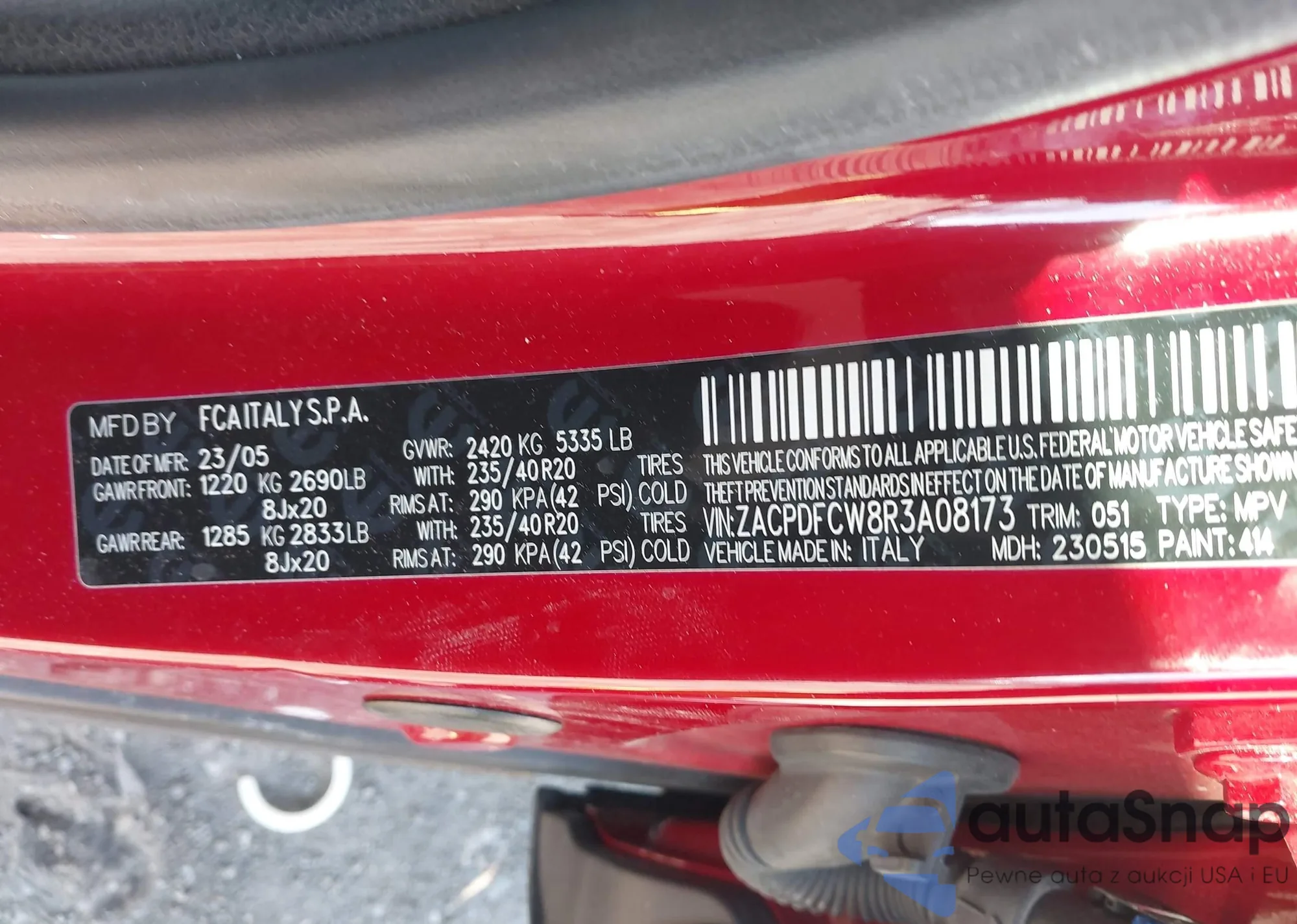 • VIN: ZACPDFCW8R3A08173
