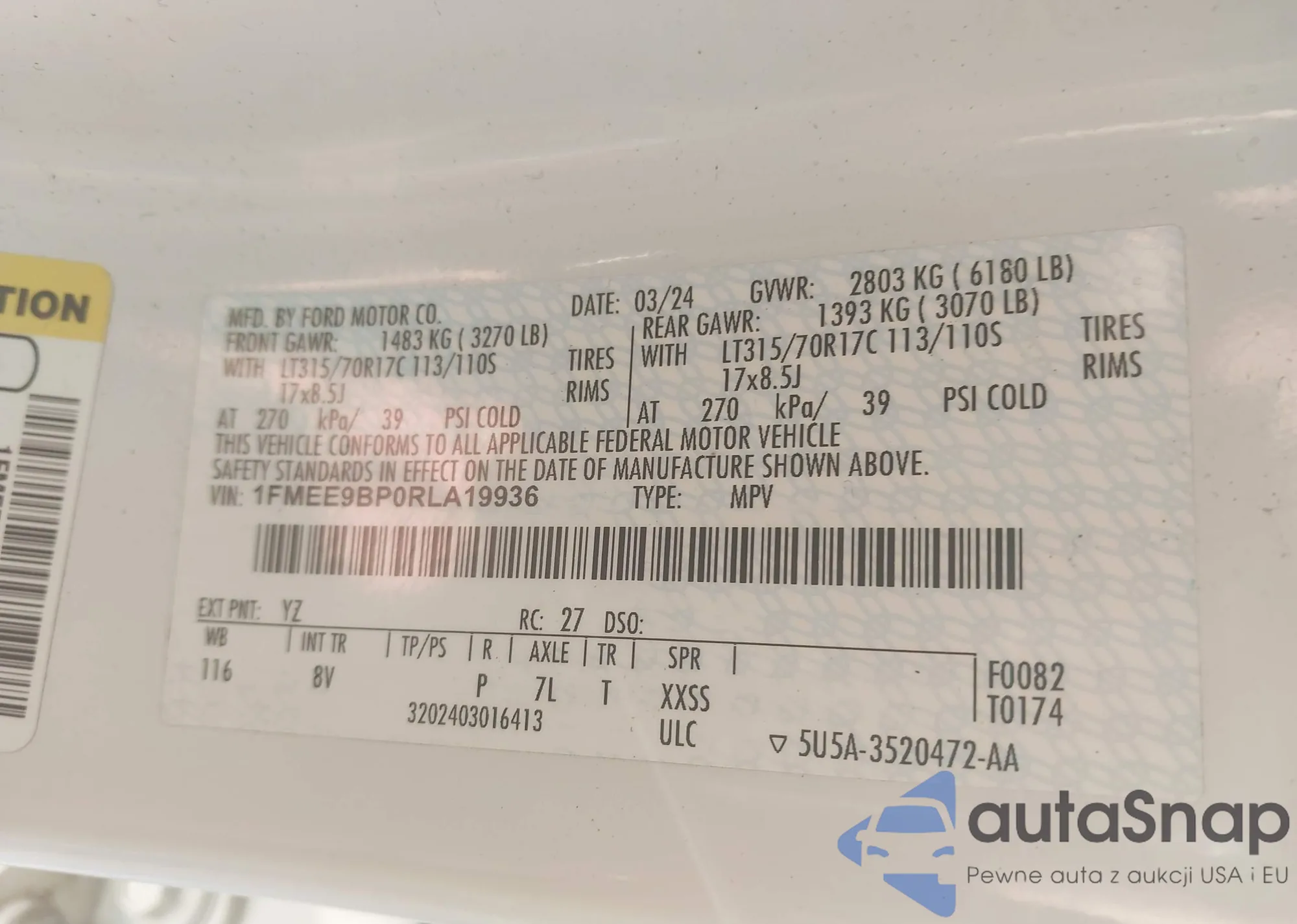 • VIN: 1FMEE9BP0RLA19936