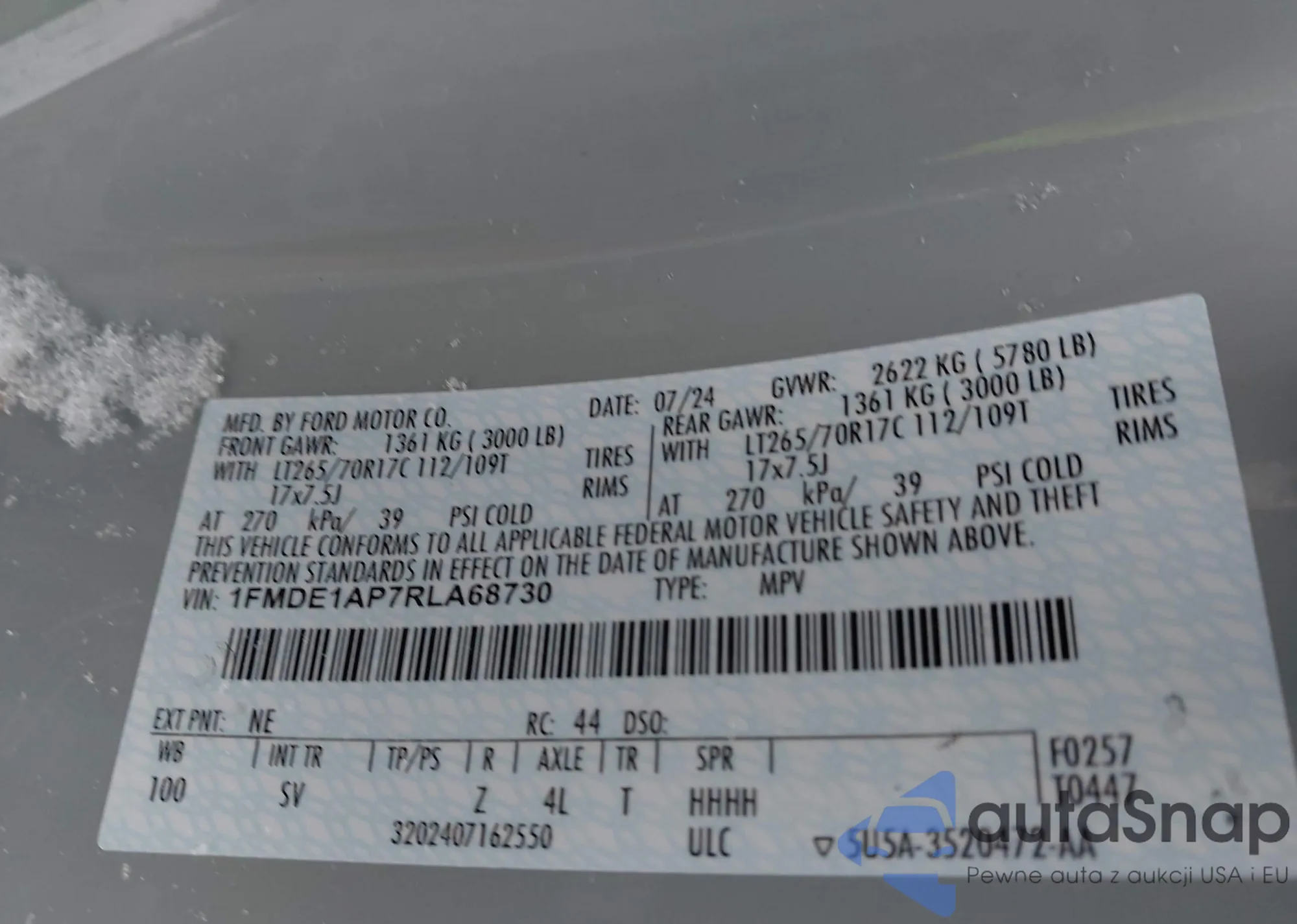 • VIN: 1FMDE1AP7RLA68730