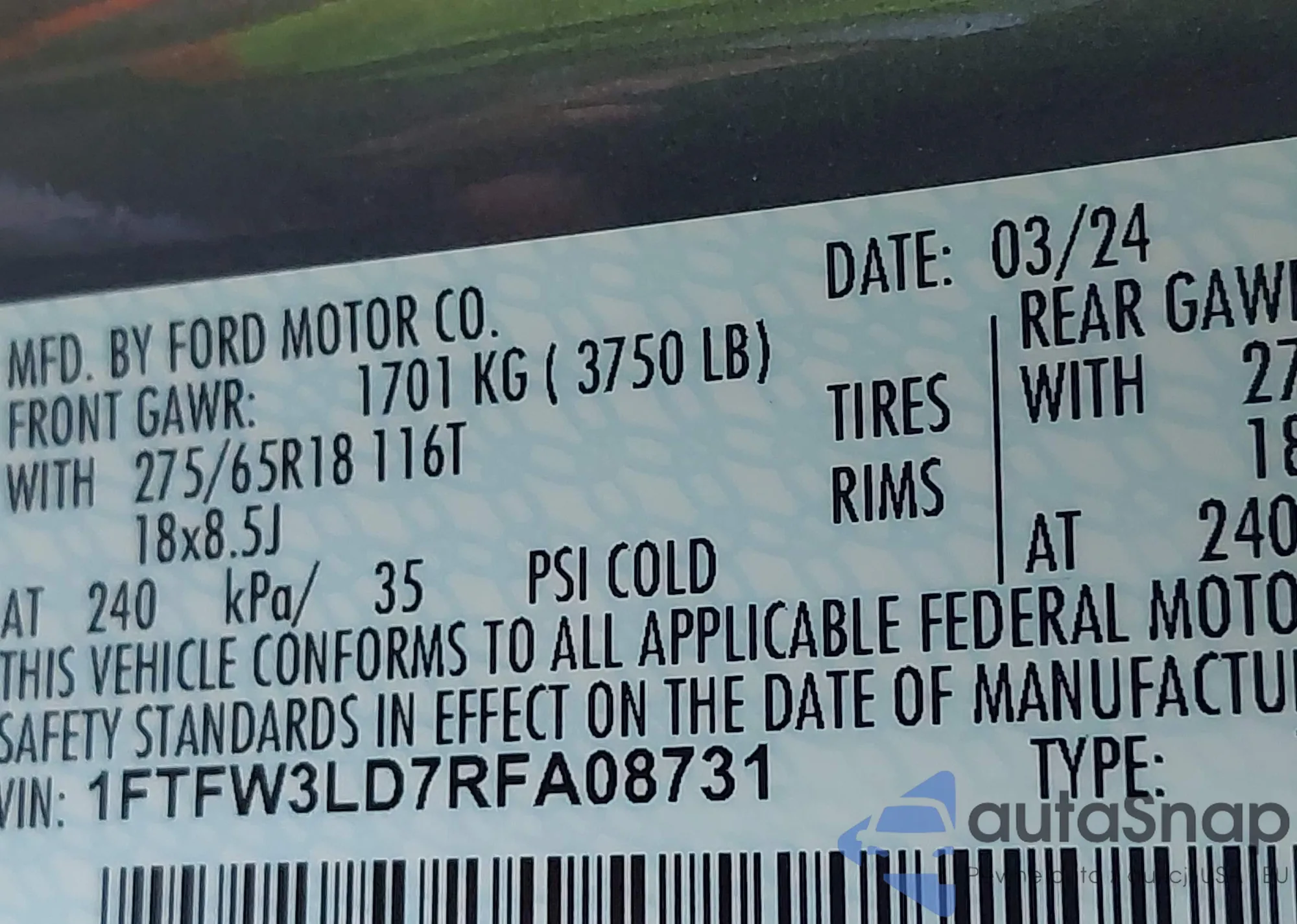 VIN: 1FTFW3LD7RFA08731