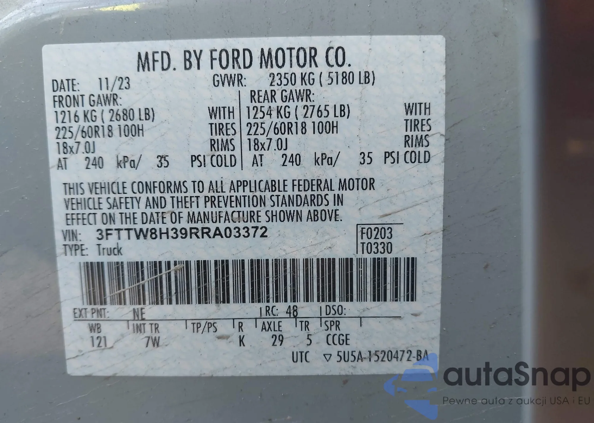 • VIN: 3FTTW8H39RRA03372