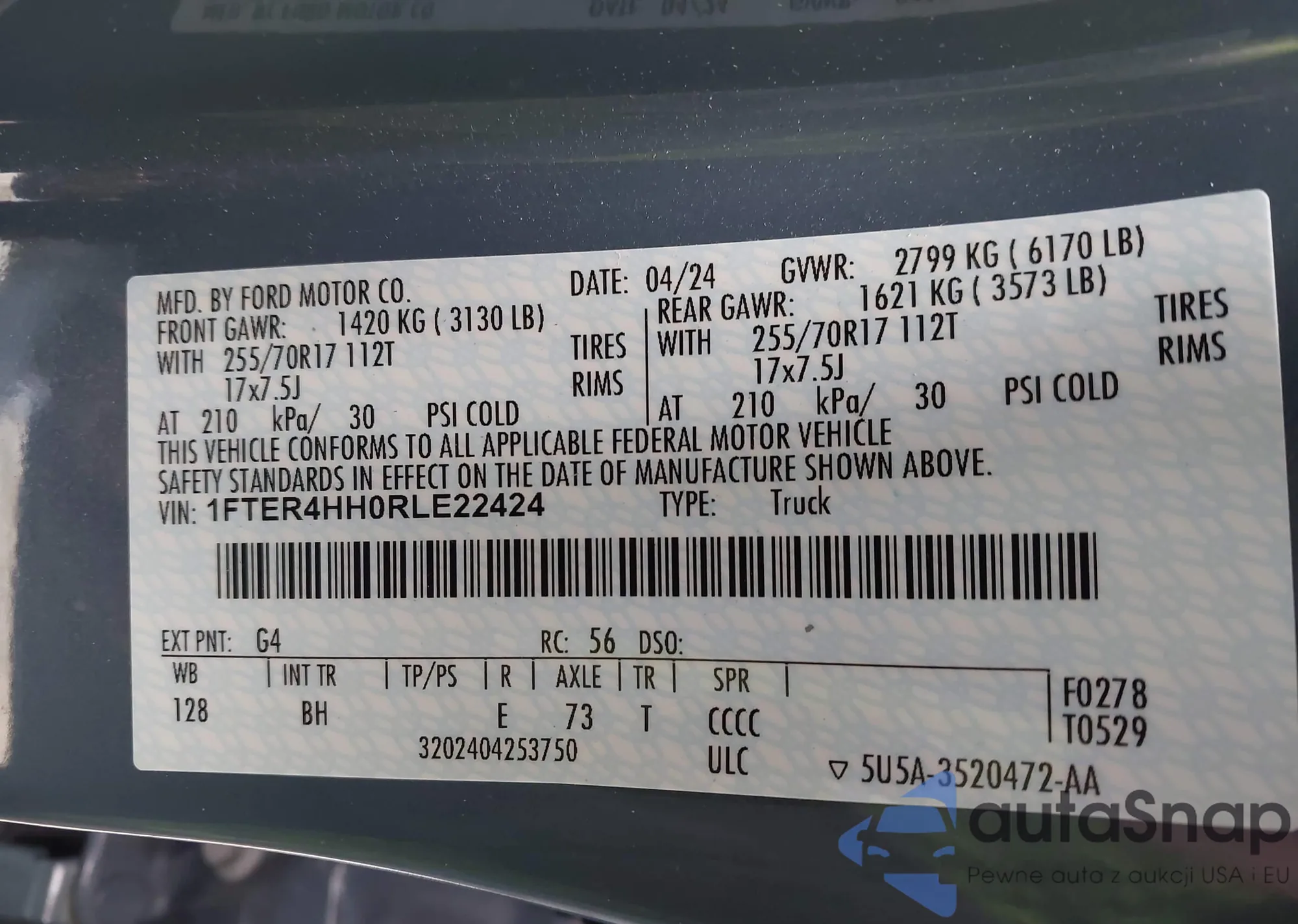 Ford Ranger 2024 – Historia pojazdu (sprzedany na IAAI)