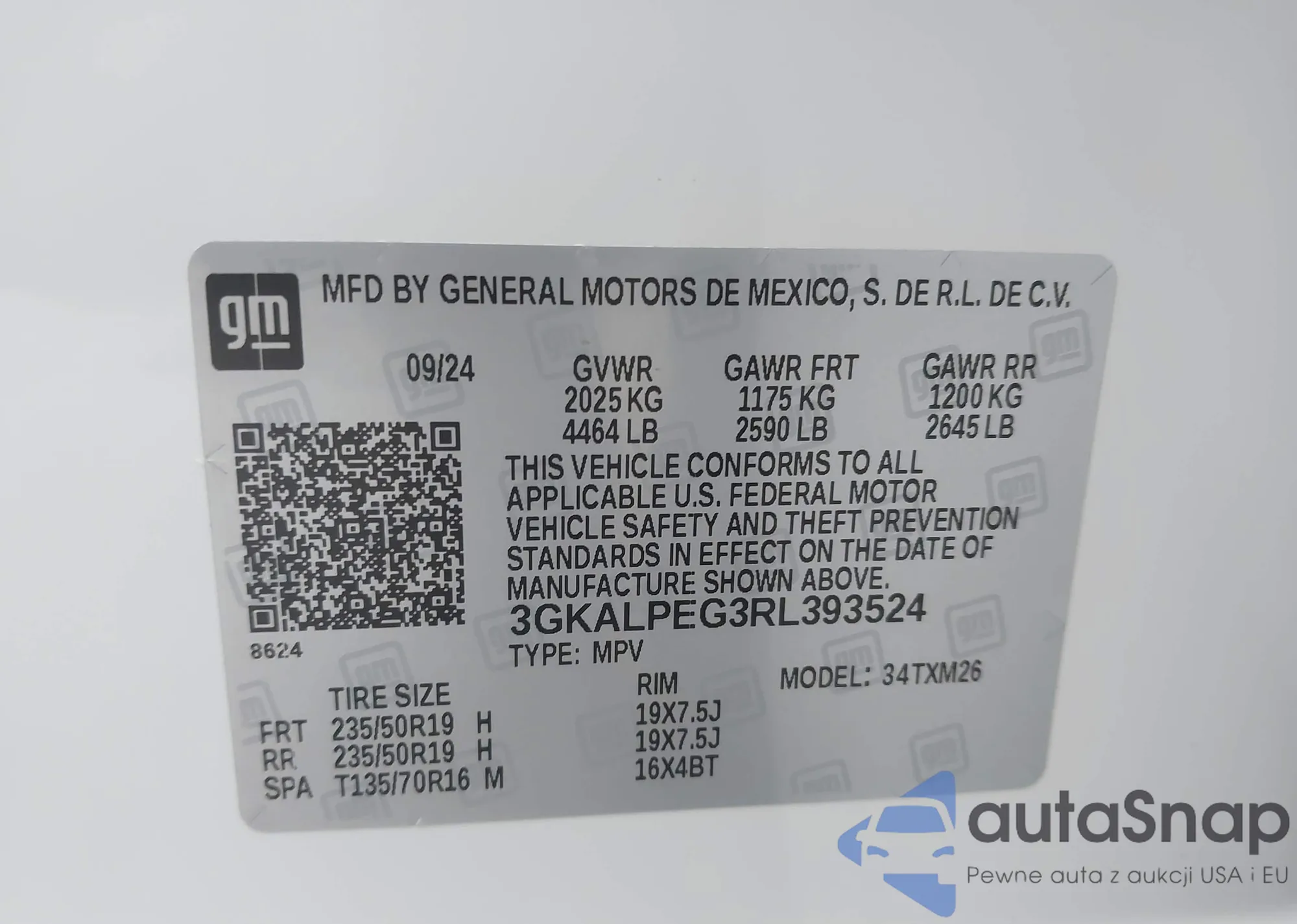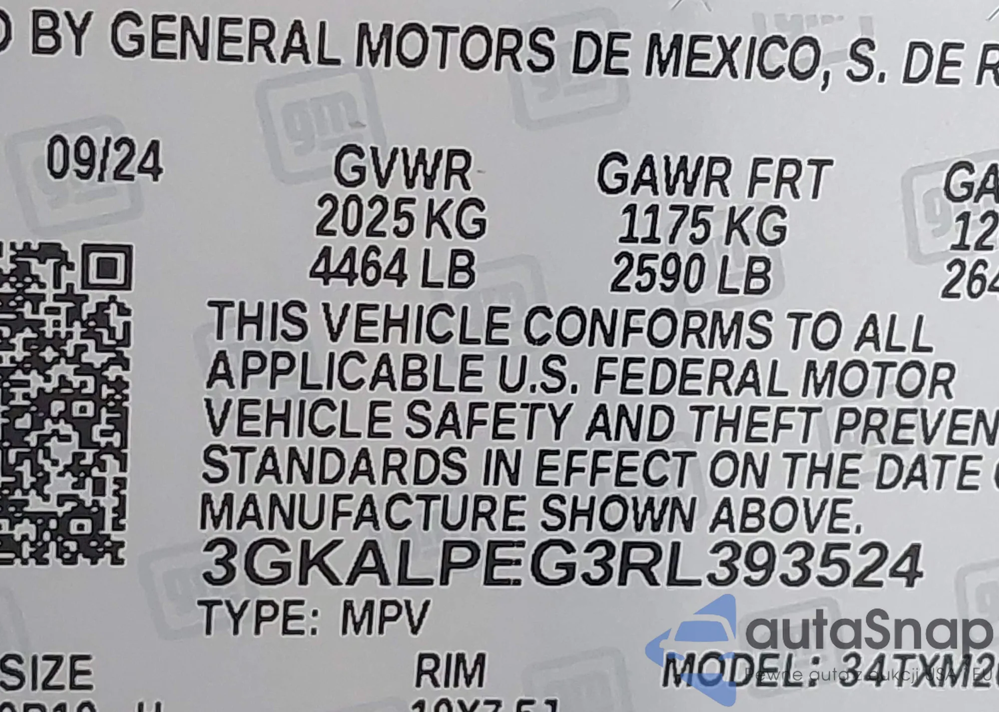 VIN: 3GKALPEG3RL393524