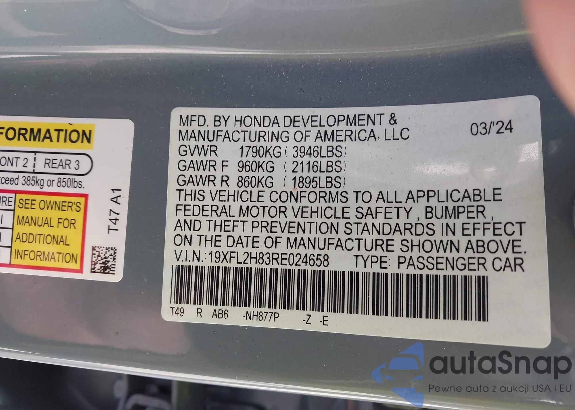 • VIN: 19XFL2H83RE024658