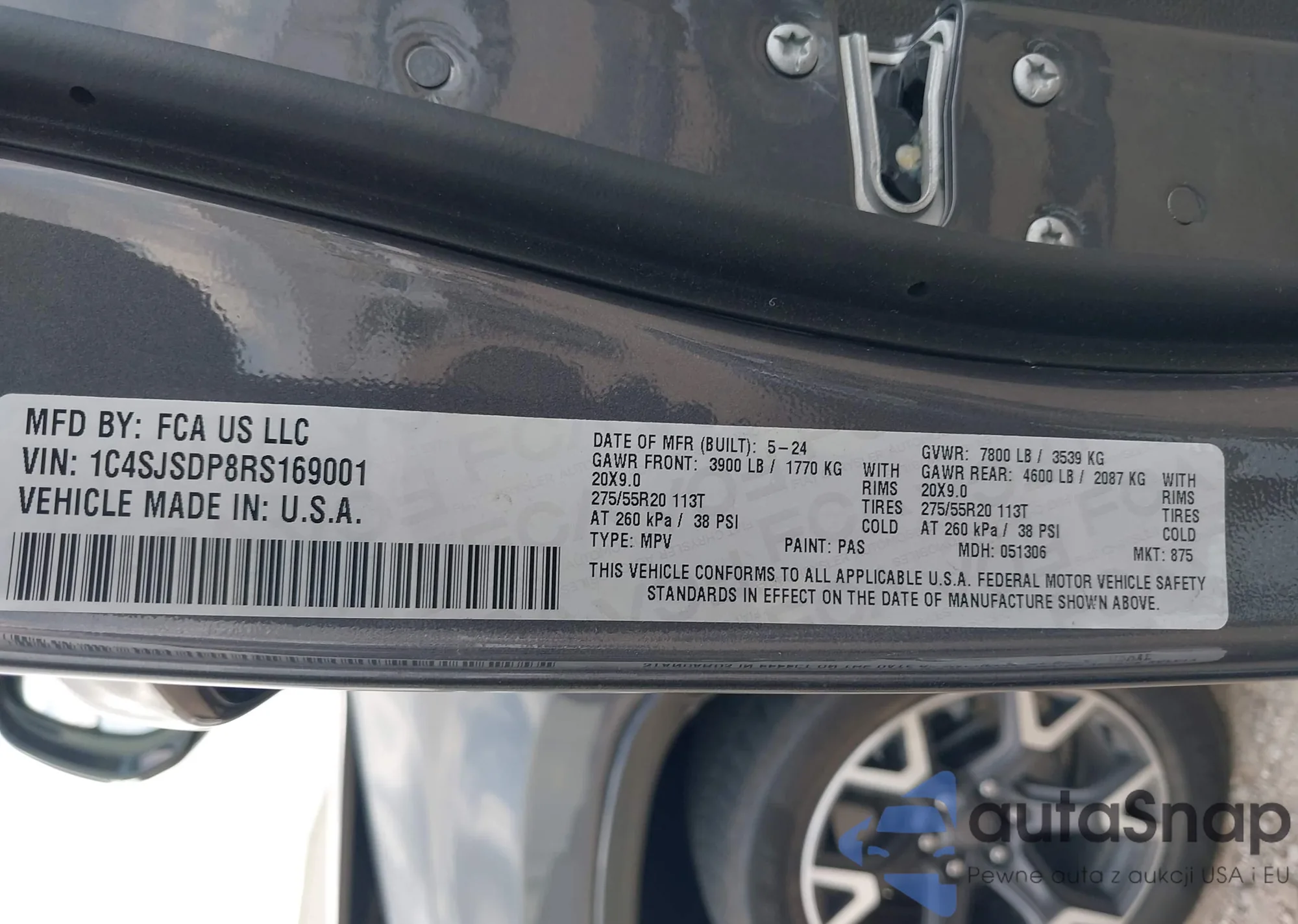 • VIN: 1C4SJSDP8RS169001