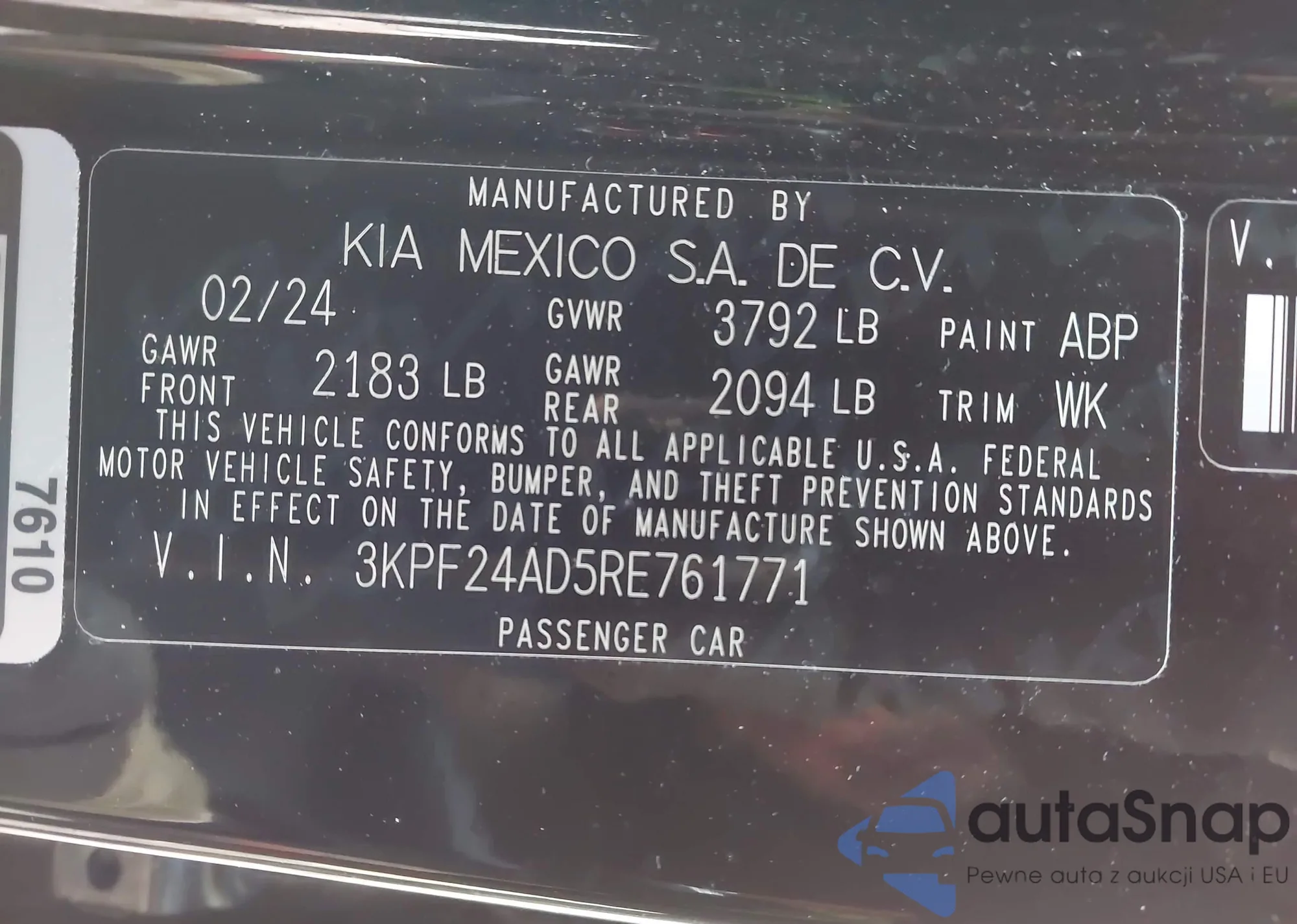 Samochód Kia Forte 2024 (VIN 3KPF24AD5RE761771) nie był wcześniej licytowany. Dokumenty są czyste, przebieg odpowiada lub jest niższy niż średnia rynku. Sprzedaje go firma ubezpieczeniowa – polecamy zakup. Dostawa do portu zajmie ok. 6–8 tygodni.