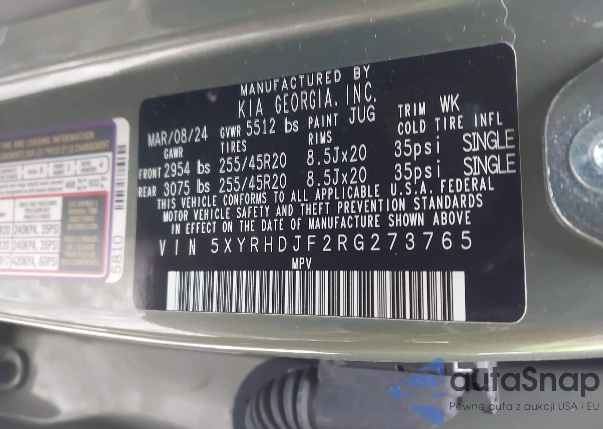 Samochód Kia Sorento 2024 (VIN 5XYRHDJF2RG273765) nie był wcześniej licytowany. Dokumenty są czyste, przebieg odpowiada lub jest niższy niż średnia rynku. Sprzedaje go firma ubezpieczeniowa – polecamy zakup. Dostawa do portu zajmie ok. 6–8 tygodni.
