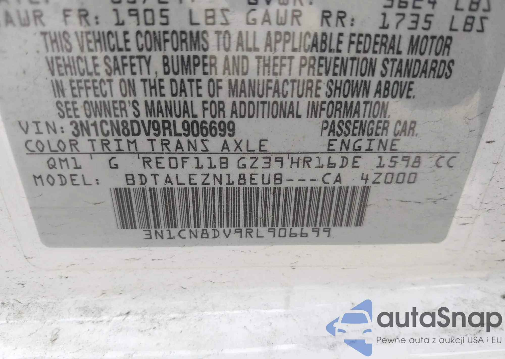 Samochód Nissan Versa 2024 (VIN 3N1CN8DV9RL906699) nie był wcześniej licytowany. Dokumenty są czyste, przebieg odpowiada lub jest niższy niż średnia rynku. Sprzedaje go firma ubezpieczeniowa – polecamy zakup. Dostawa do portu zajmie ok. 6–8 tygodni.