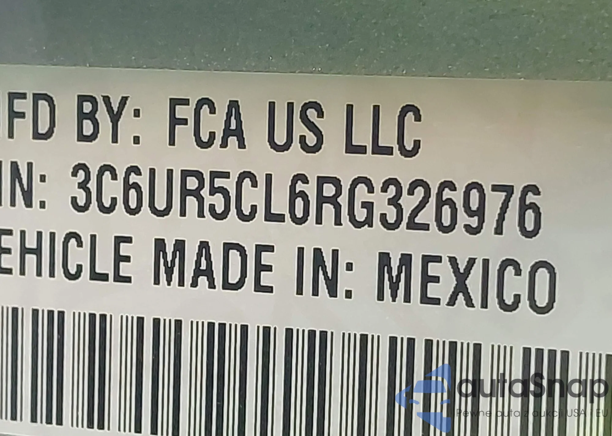 Samochód RAM 2500 2024 (VIN 3C6UR5CL6RG326976) nie był wcześniej licytowany. Dokumenty są czyste, przebieg odpowiada lub jest niższy niż średnia rynku. Sprzedaje go firma ubezpieczeniowa – polecamy zakup. Dostawa do portu zajmie ok. 6–8 tygodni.