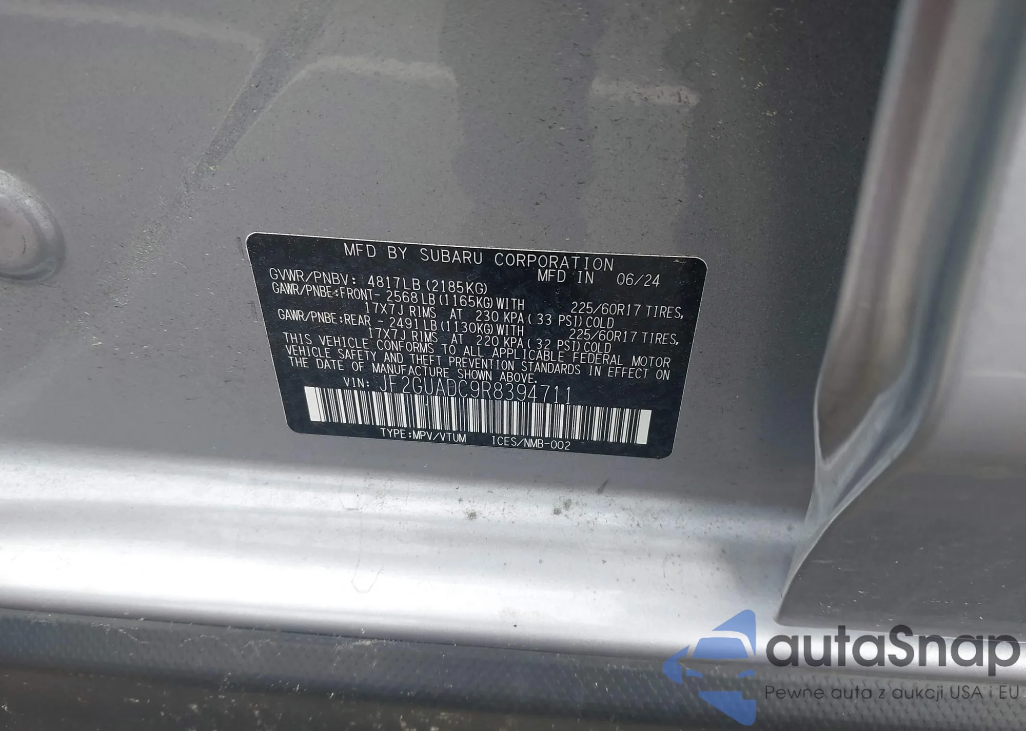 VIN: JF2GUADC9R8394711
