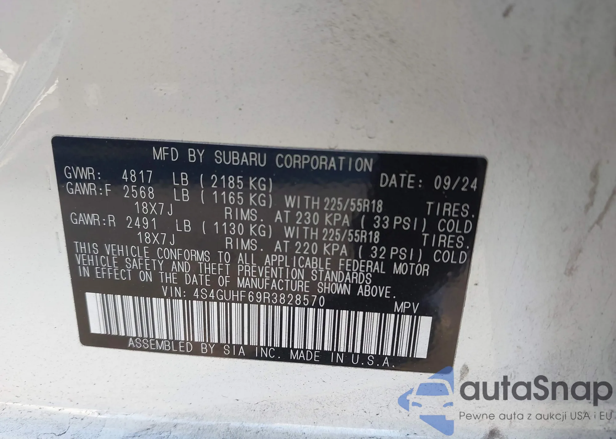 Samochód Subaru XV 2024 (VIN 4S4GUHF69R3828570) nie był wcześniej licytowany. Dokumenty są czyste, przebieg odpowiada lub jest niższy niż średnia rynku. Sprzedaje go firma ubezpieczeniowa – polecamy zakup. Dostawa do portu zajmie ok. 6–8 tygodni.