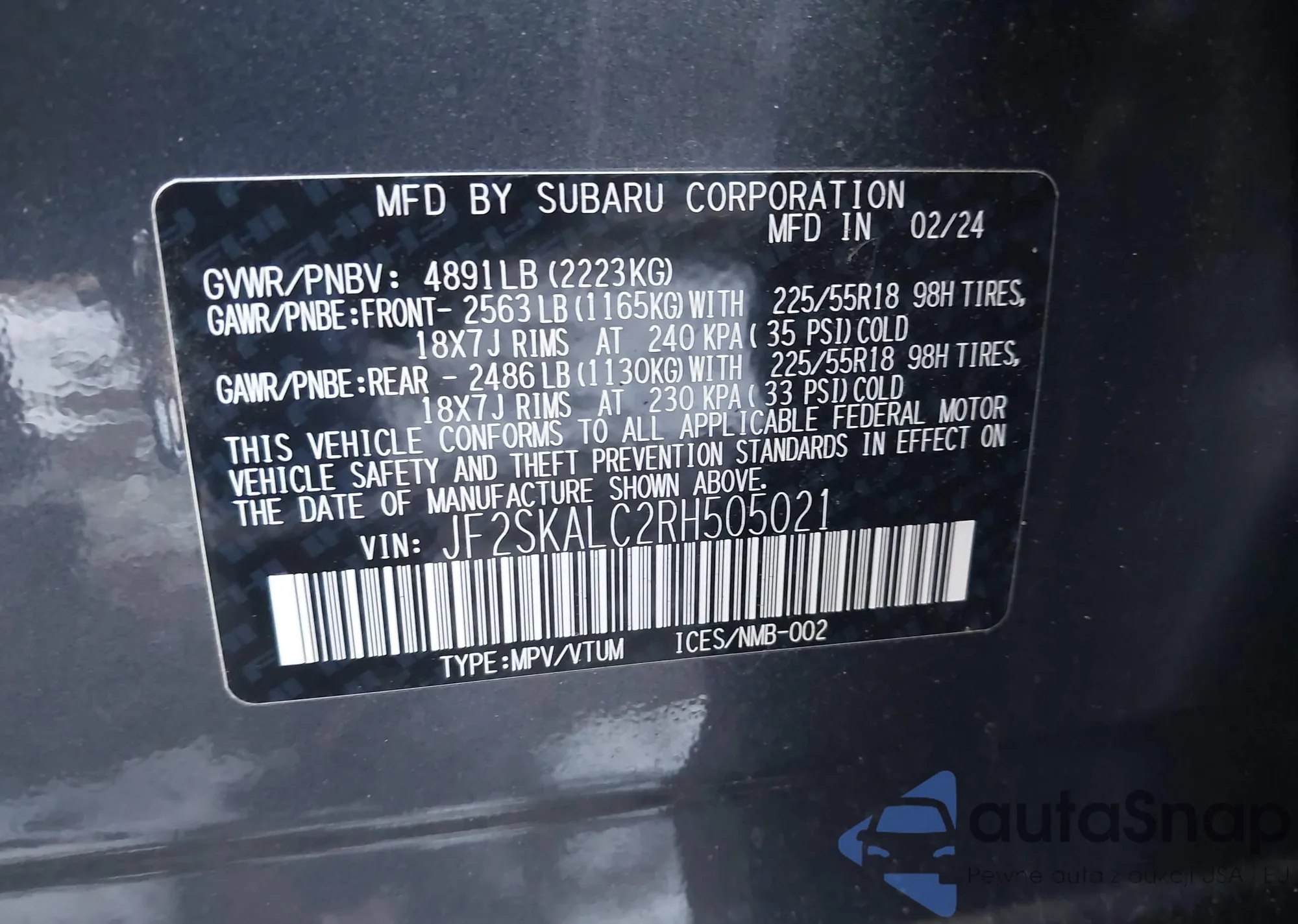 VIN: JF2SKALC2RH505021