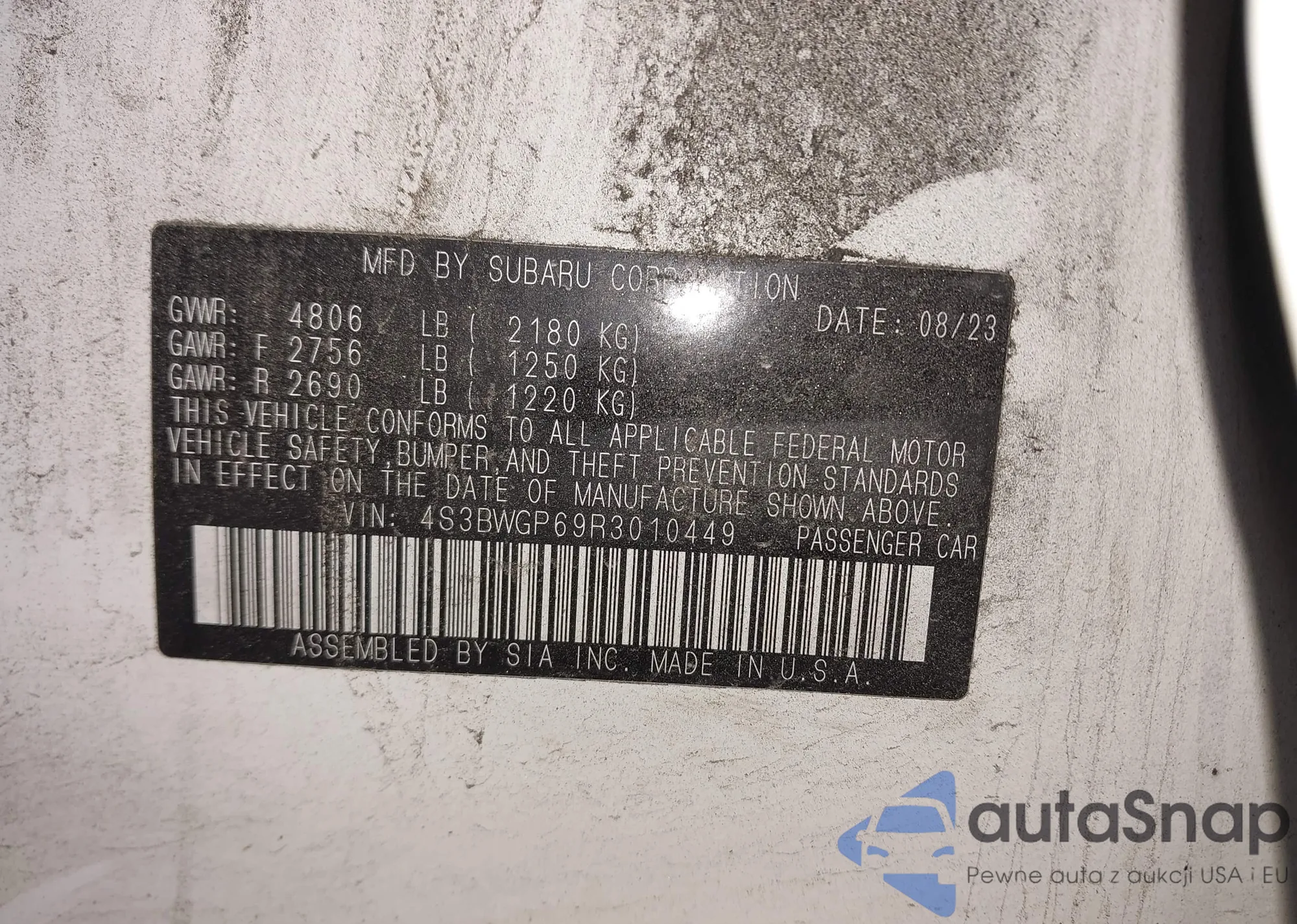 • VIN: 4S3BWGP69R3010449