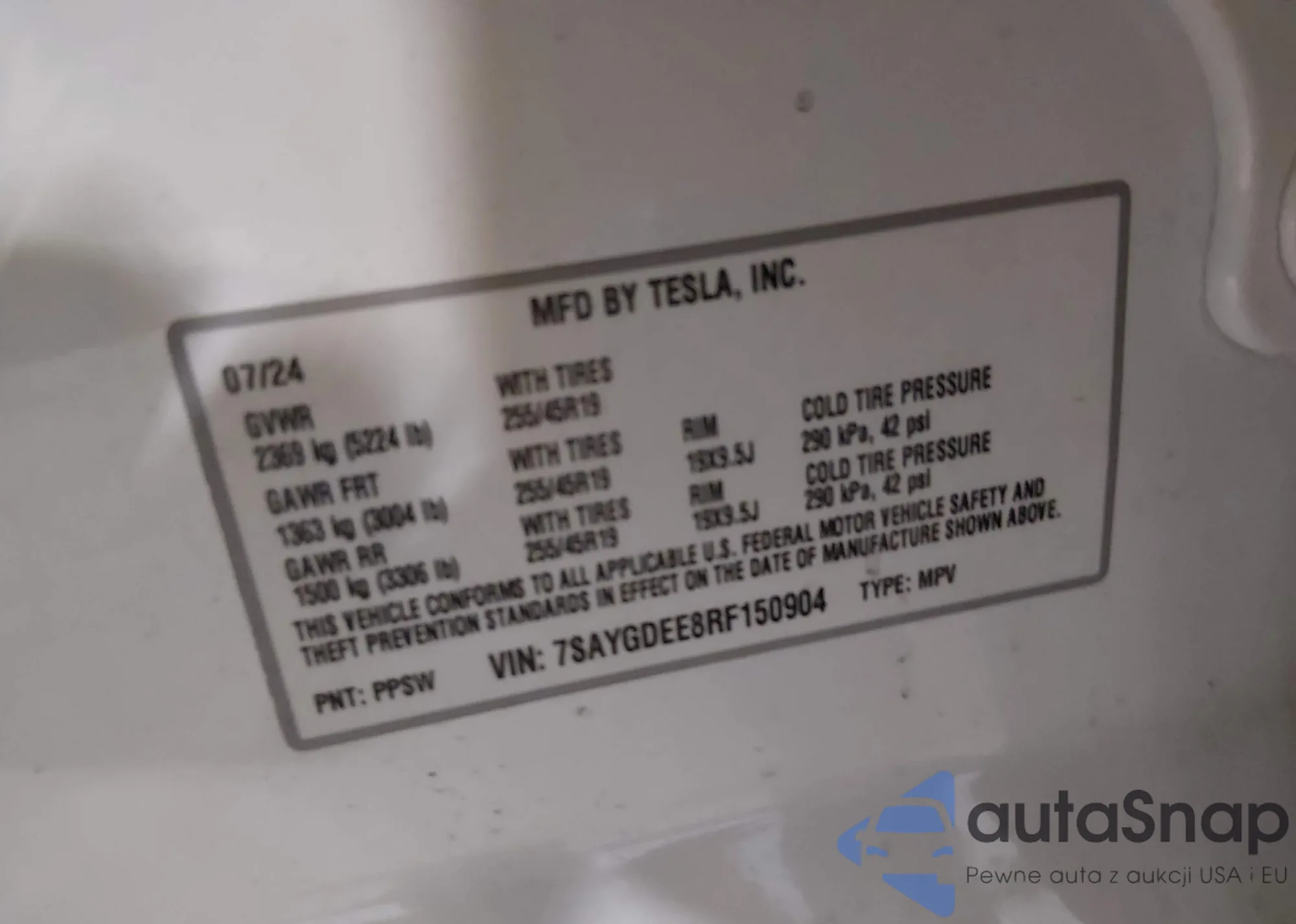 Samochód Tesla Model Y 2024 (VIN 7SAYGDEE8RF150904) nie był wcześniej licytowany. Dokumenty są czyste, przebieg odpowiada lub jest niższy niż średnia rynku. Sprzedaje go firma ubezpieczeniowa – polecamy zakup. Dostawa do portu zajmie ok. 6–8 tygodni.