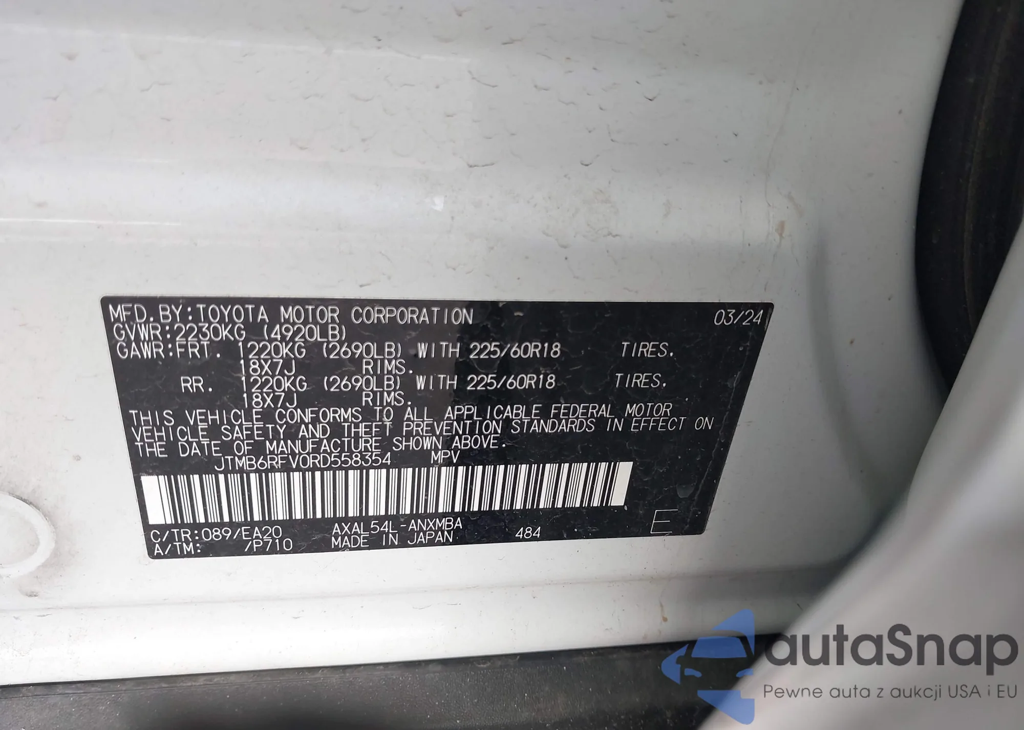 • VIN: JTMB6RFV0RD558354