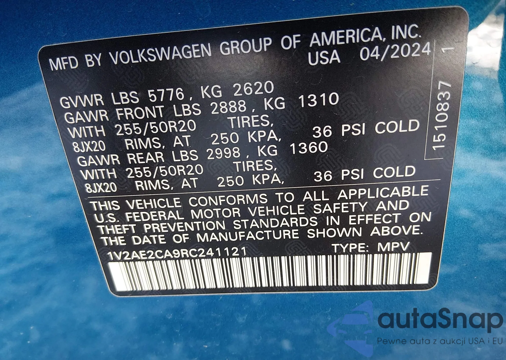 • VIN: 1V2AE2CA9RC241121
