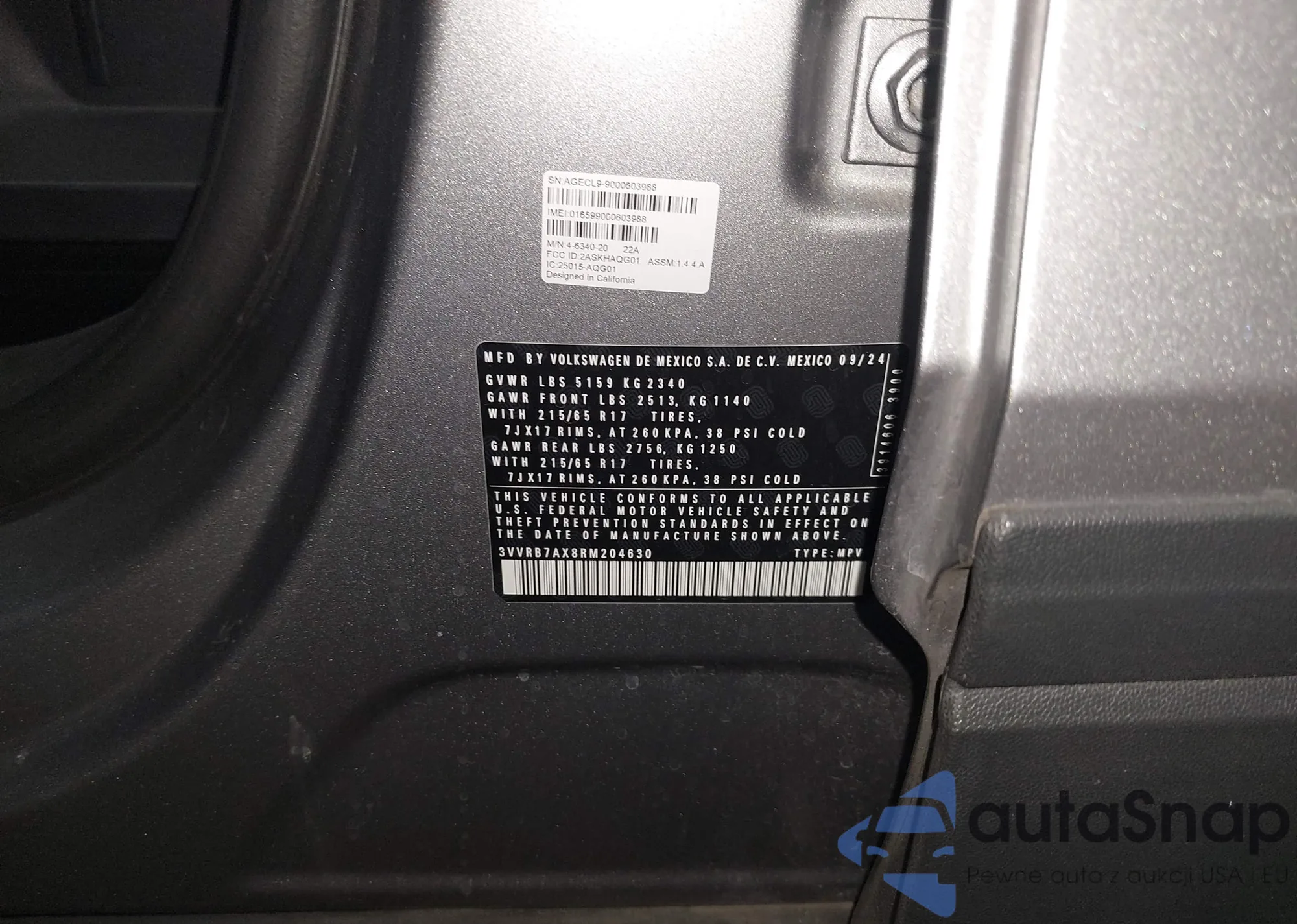 Samochód Volkswagen Tiguan 2024 (VIN 3VVRB7AX8RM204630) nie był wcześniej licytowany. Dokumenty są czyste, przebieg odpowiada lub jest niższy niż średnia rynku. Sprzedaje go firma ubezpieczeniowa – polecamy zakup. Dostawa do portu zajmie ok. 6–8 tygodni.