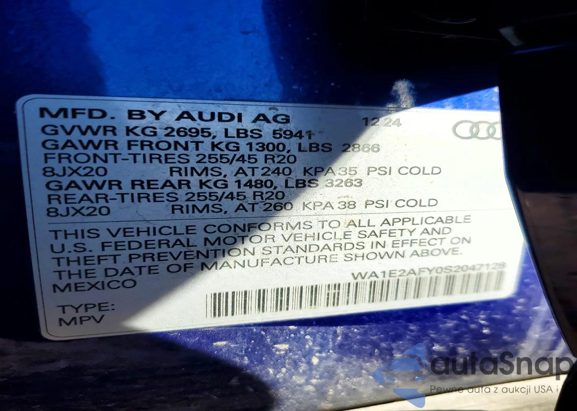 • VIN: WA1E2AFY0S2047128