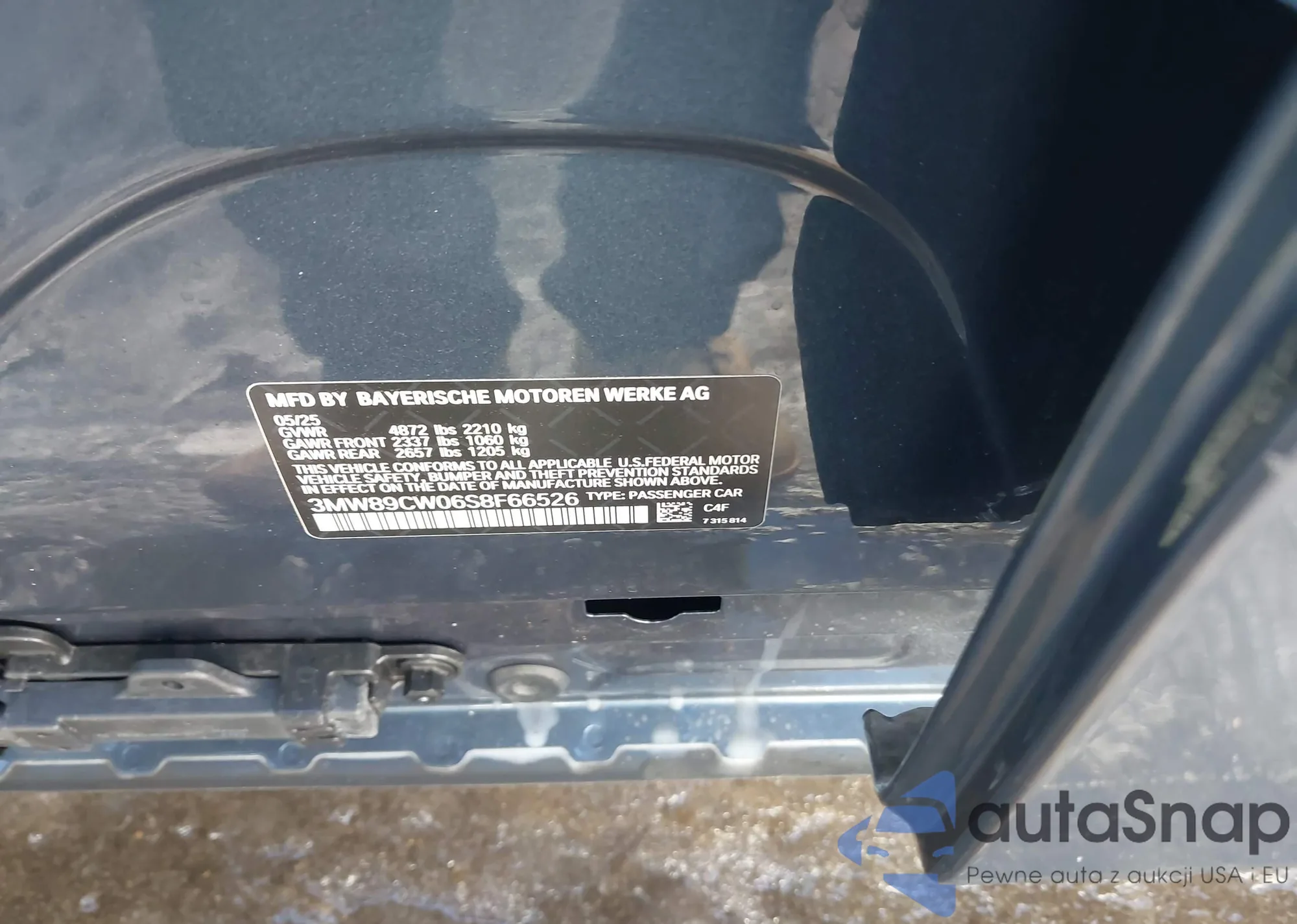 Samochód BMW 3er 2025 (VIN 3MW89CW06S8F66526) nie był wcześniej licytowany. Dokumenty są czyste, przebieg odpowiada lub jest niższy niż średnia rynku. Sprzedaje go firma ubezpieczeniowa – polecamy zakup. Dostawa do portu zajmie ok. 6–8 tygodni.