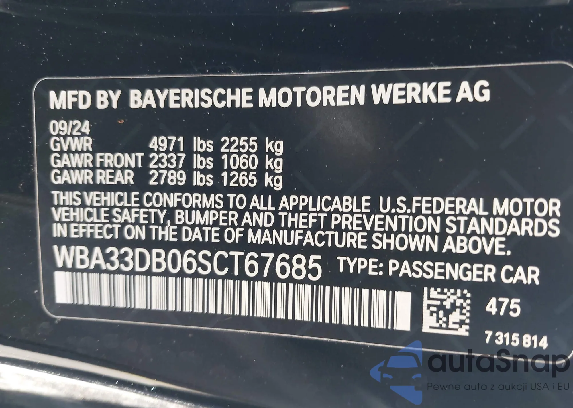 VIN: WBA33DB06SCT67685