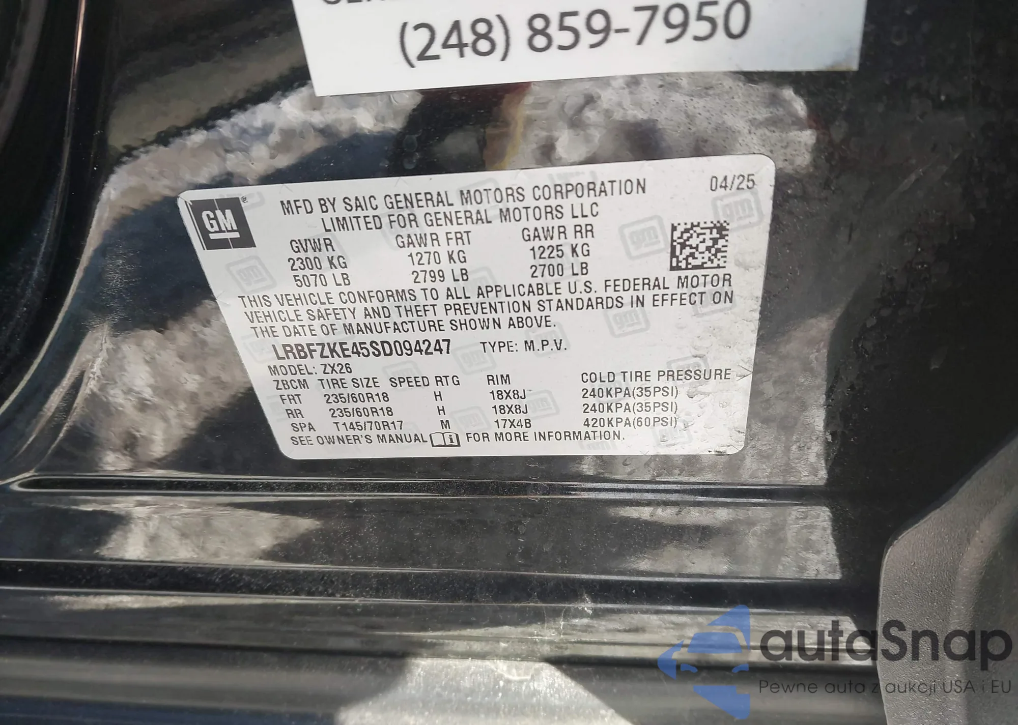• VIN: LRBFZKE45SD094247
