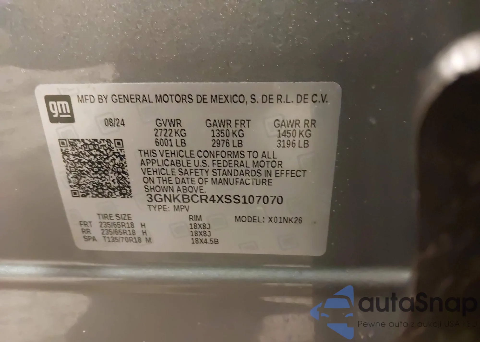 • VIN: 3GNKBCR4XSS107070