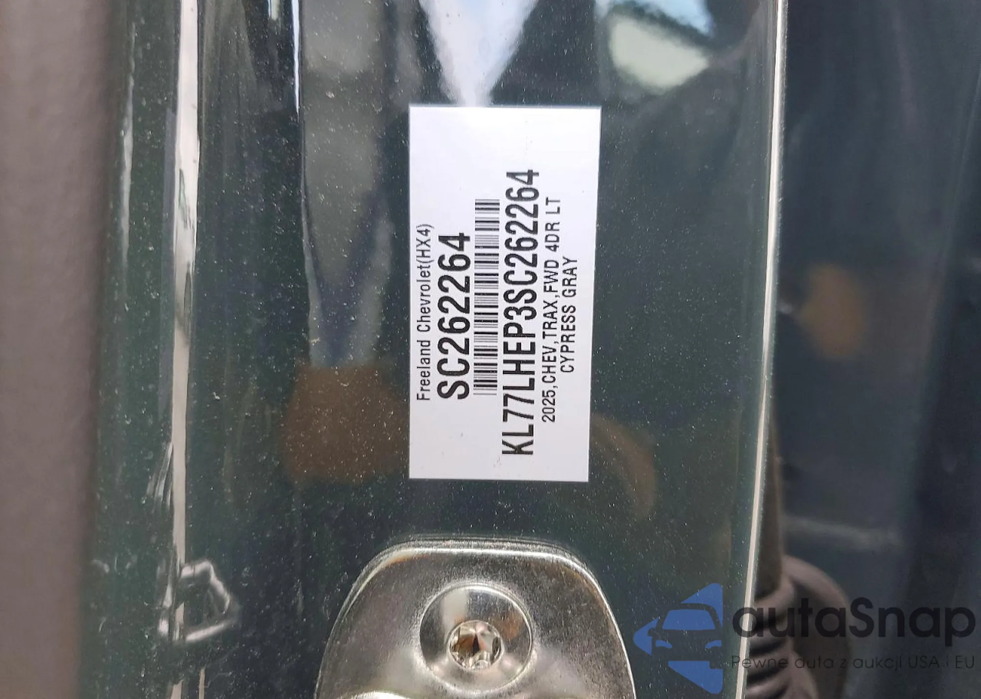 Samochód Chevrolet Trax 2025 (VIN KL77LHEP3SC262264) nie był wcześniej licytowany. Dokumenty są czyste, przebieg odpowiada lub jest niższy niż średnia rynku. Sprzedaje go firma ubezpieczeniowa – polecamy zakup. Dostawa do portu zajmie ok. 6–8 tygodni.