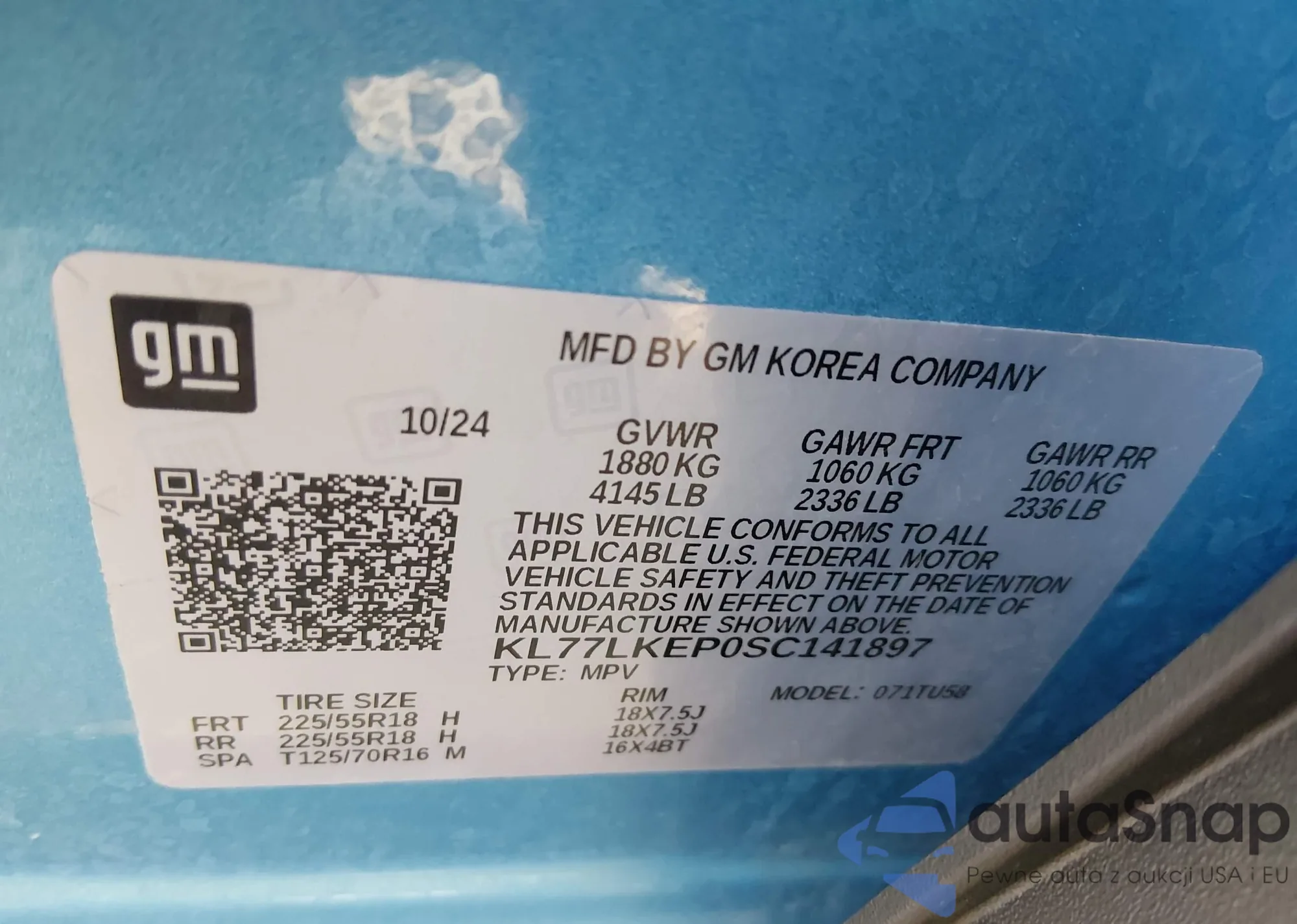 Samochód Chevrolet Trax 2025 (VIN KL77LKEP0SC141897) nie był wcześniej licytowany. Dokumenty są czyste, przebieg odpowiada lub jest niższy niż średnia rynku. Sprzedaje go firma ubezpieczeniowa – polecamy zakup. Dostawa do portu zajmie ok. 6–8 tygodni.