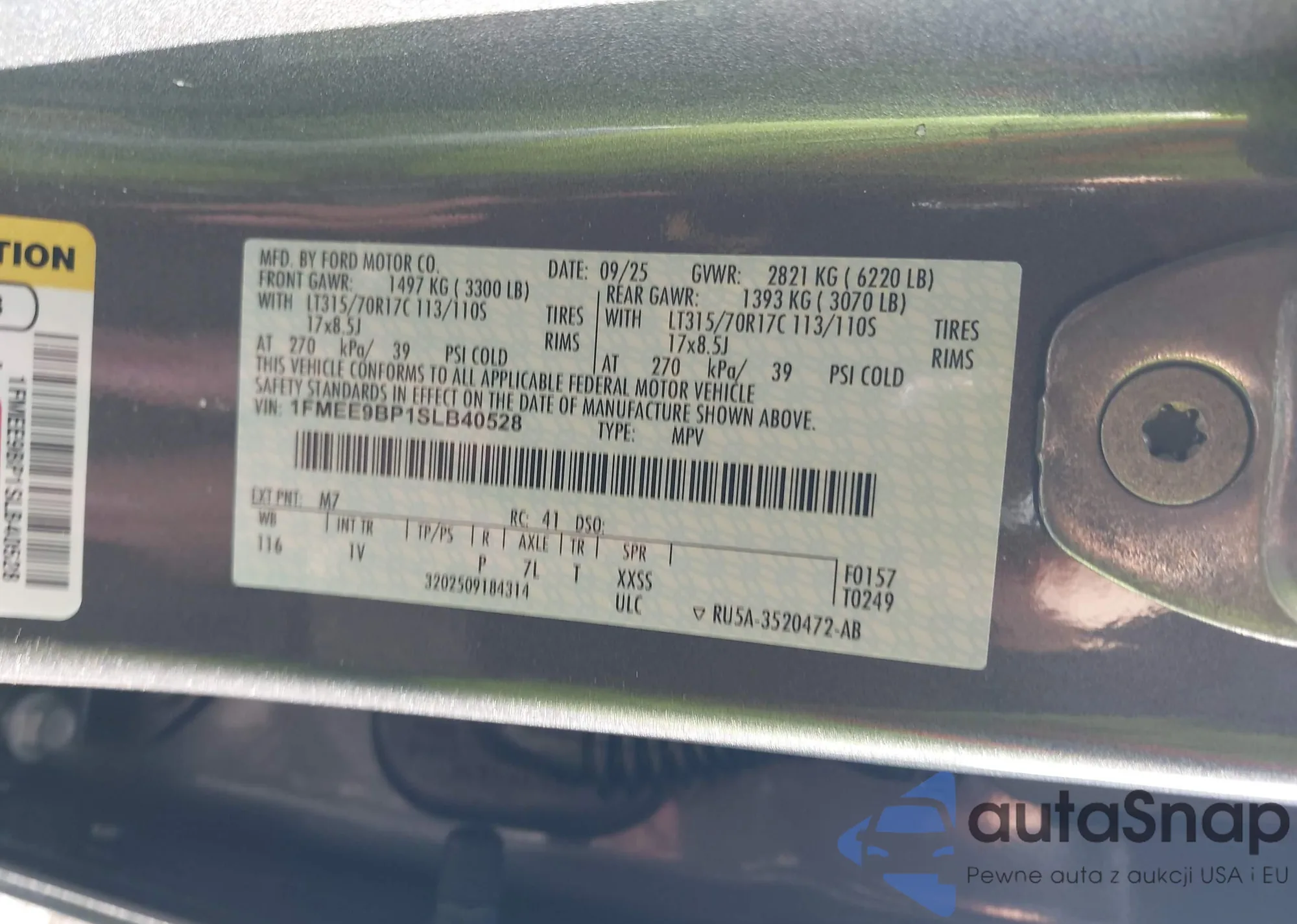 • VIN: 1FMEE9BP1SLB40528