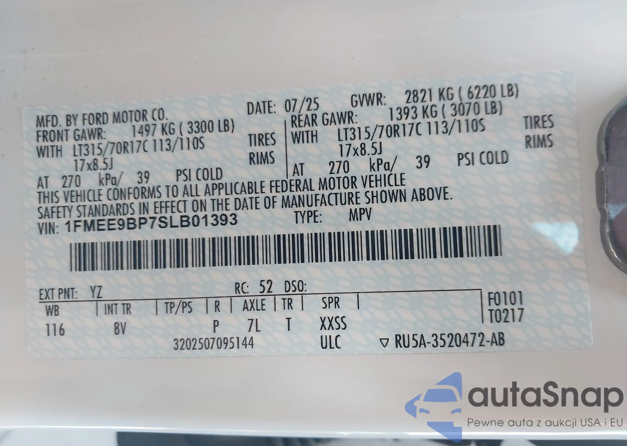 • VIN: 1FMEE9BP7SLB01393