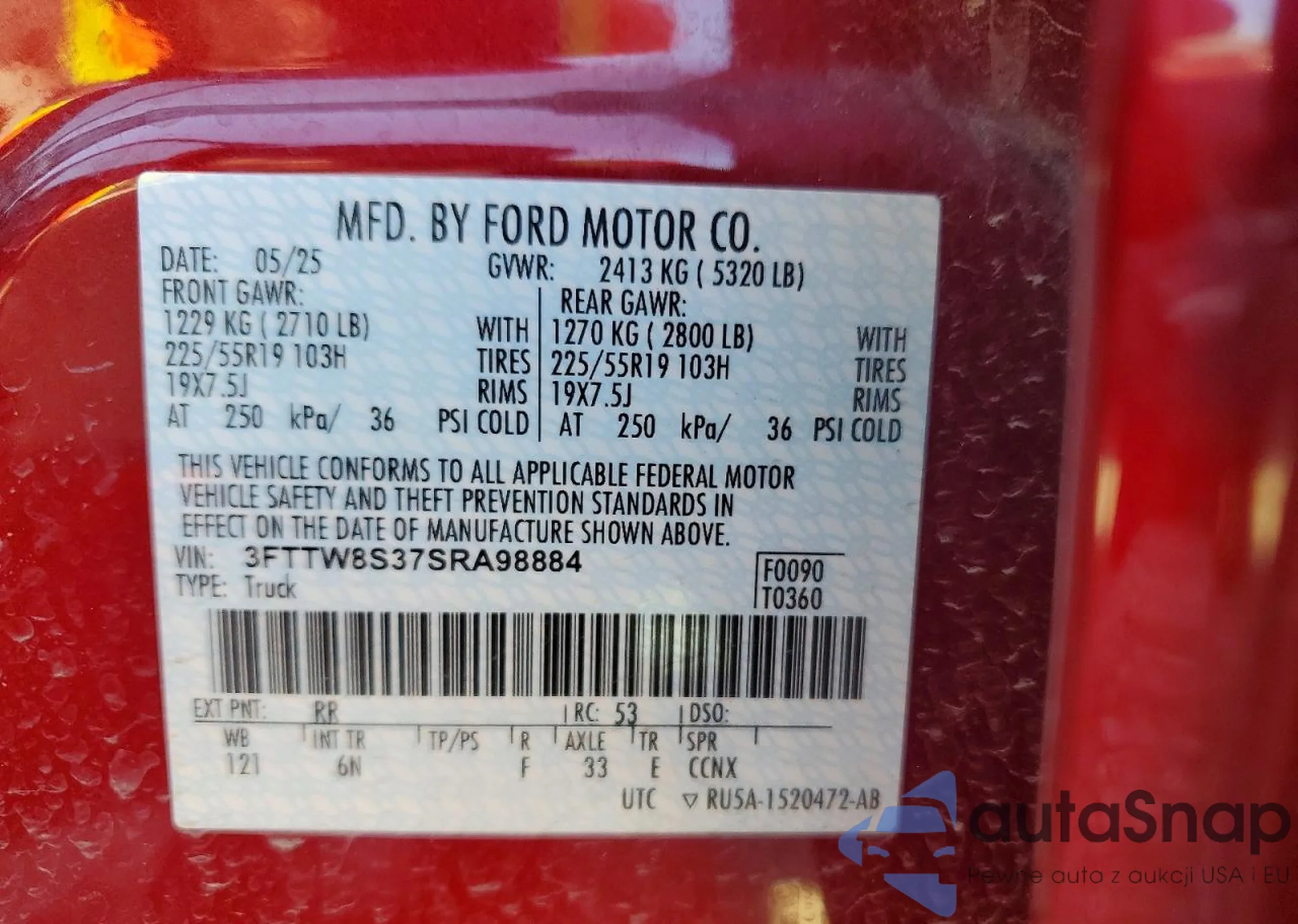 Samochód Ford Maverick 2025 (VIN 3FTTW8S37SRA98884) nie był wcześniej licytowany. Dokumenty są czyste, przebieg odpowiada lub jest niższy niż średnia rynku. Sprzedaje go firma ubezpieczeniowa – polecamy zakup. Dostawa do portu zajmie ok. 6–8 tygodni.