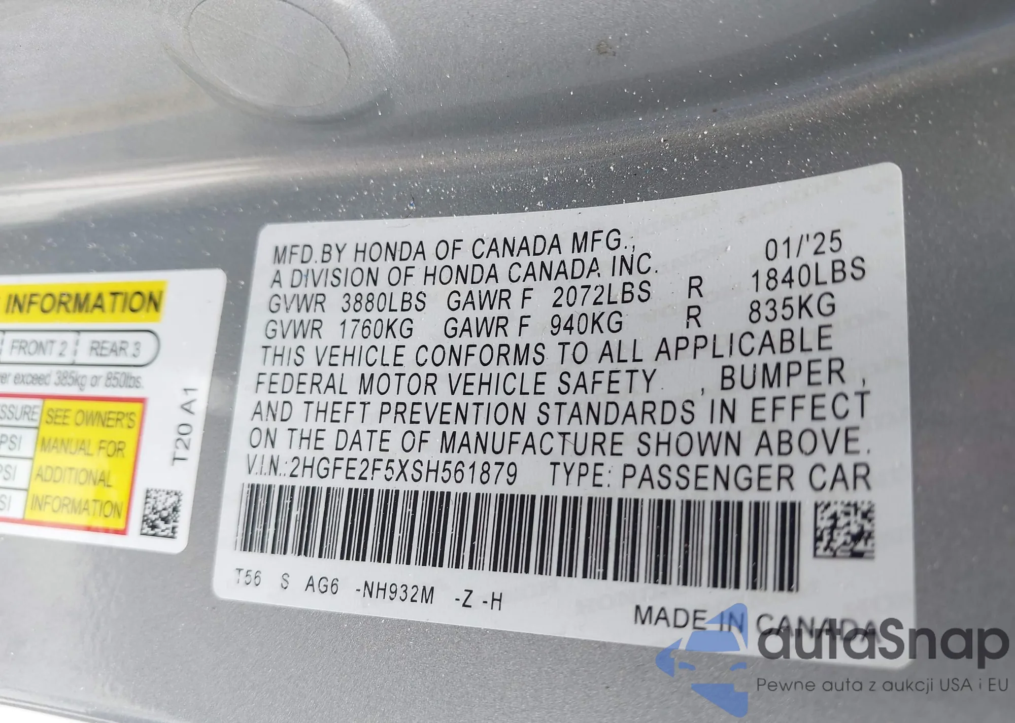 VIN: 2HGFE2F5XSH561879