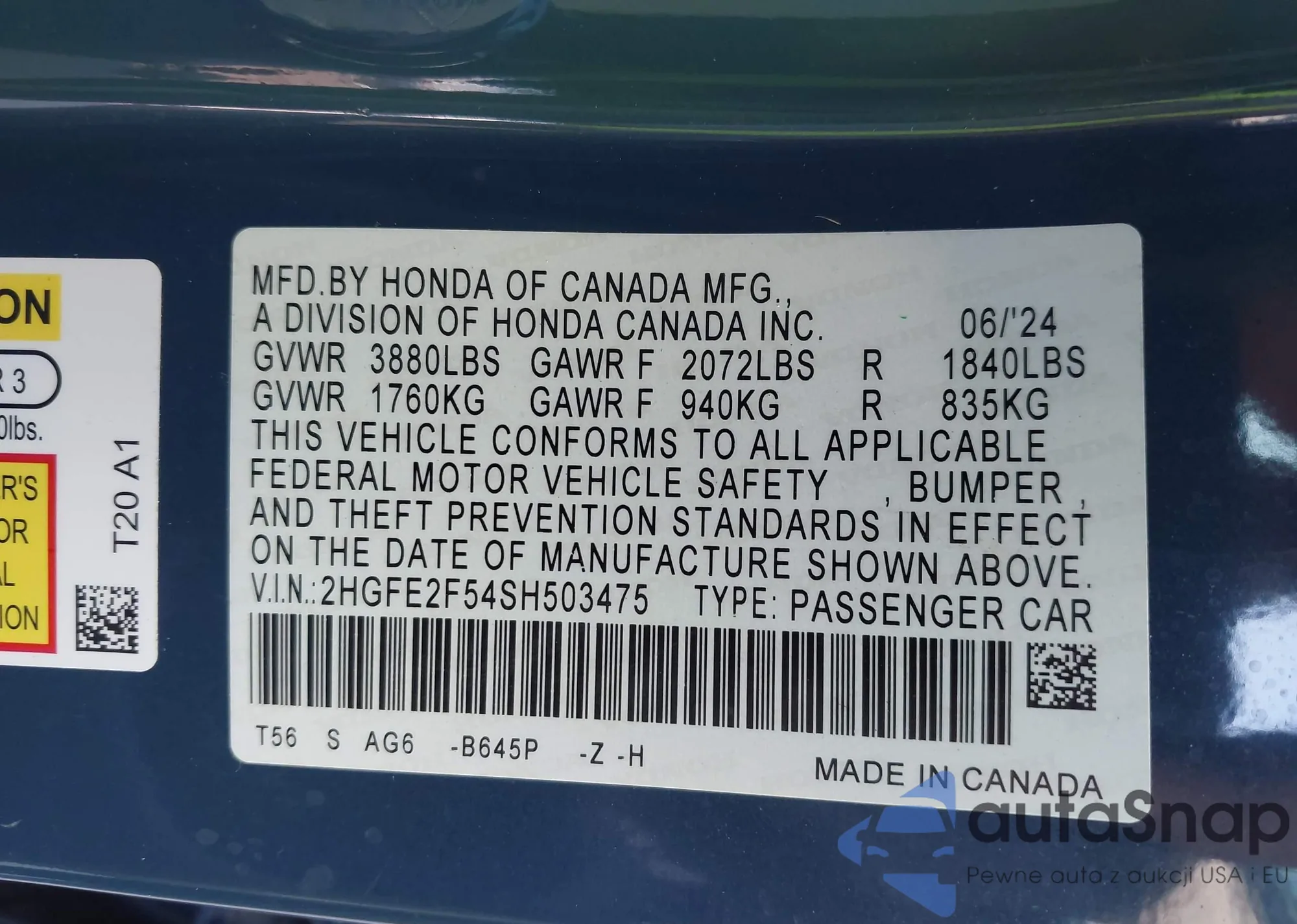 Honda Civic 2025 – Historia pojazdu (sprzedany na IAAI)