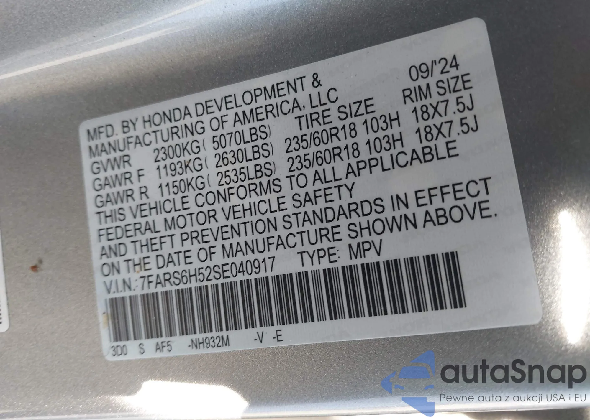 Samochód Honda CR-V 2025 (VIN 7FARS6H52SE040917) nie był wcześniej licytowany. Dokumenty są czyste, przebieg odpowiada lub jest niższy niż średnia rynku. Sprzedaje go firma ubezpieczeniowa – polecamy zakup. Dostawa do portu zajmie ok. 6–8 tygodni.