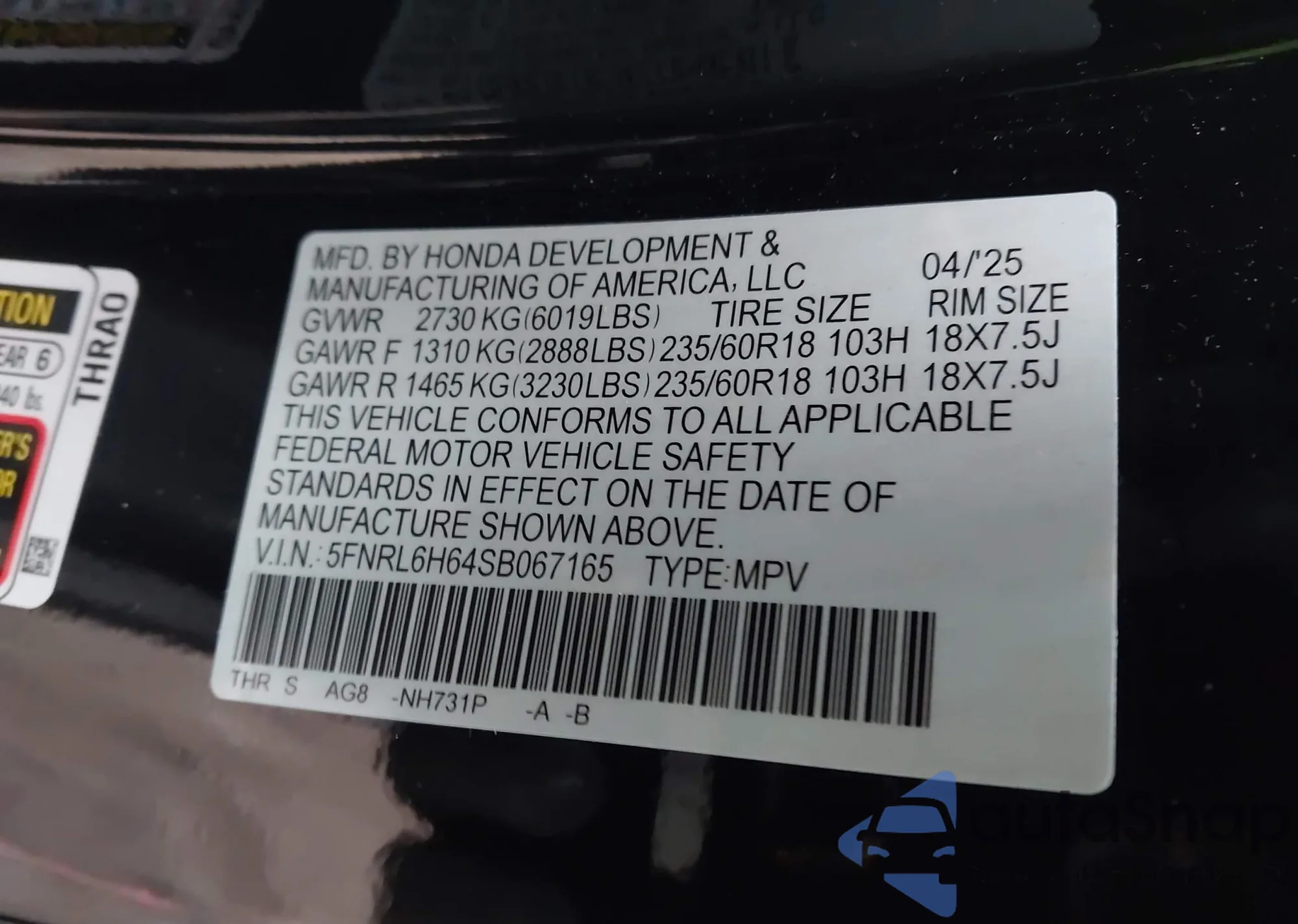 VIN: 5FNRL6H64SB067165