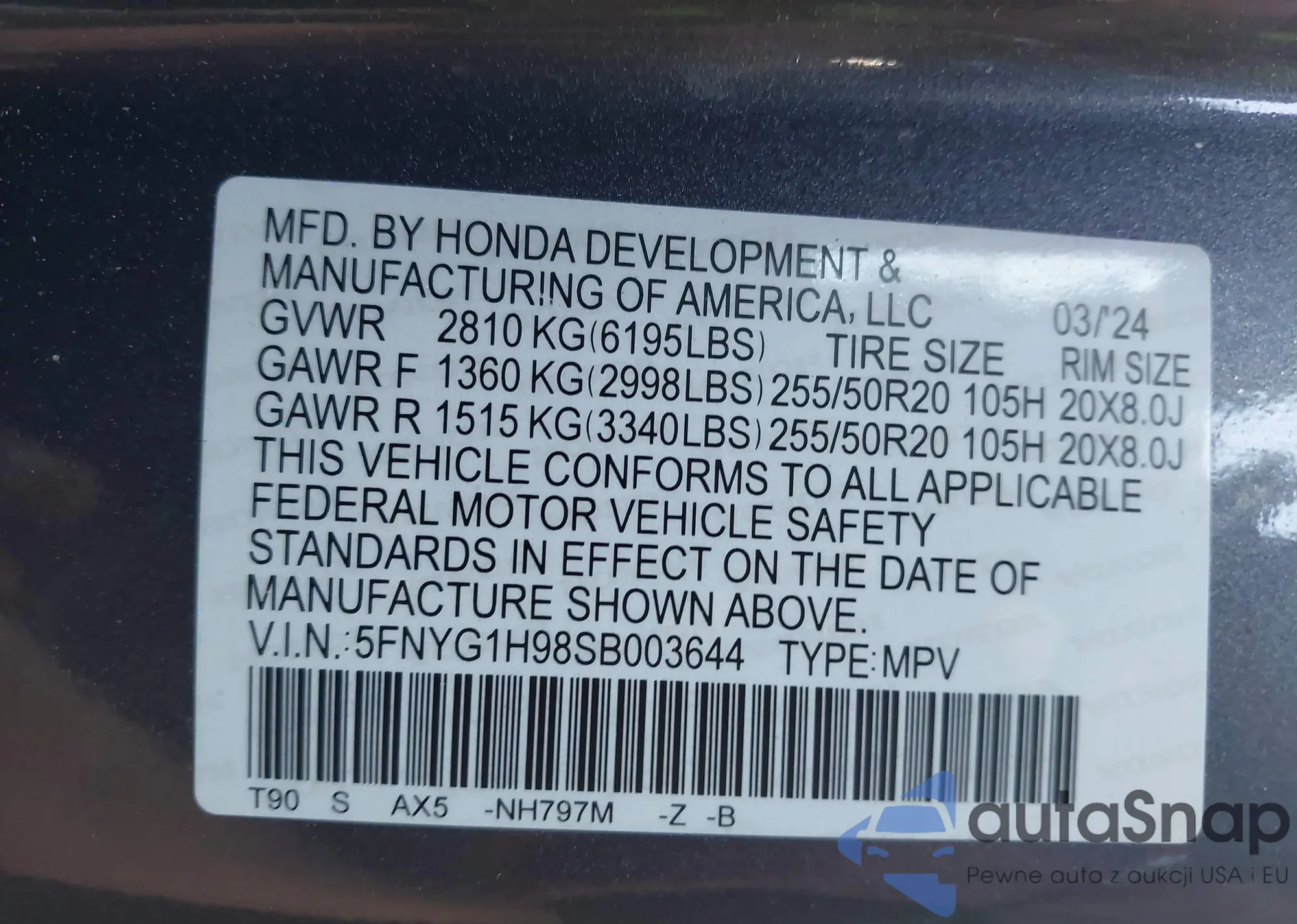 VIN: 5FNYG1H98SB003644
