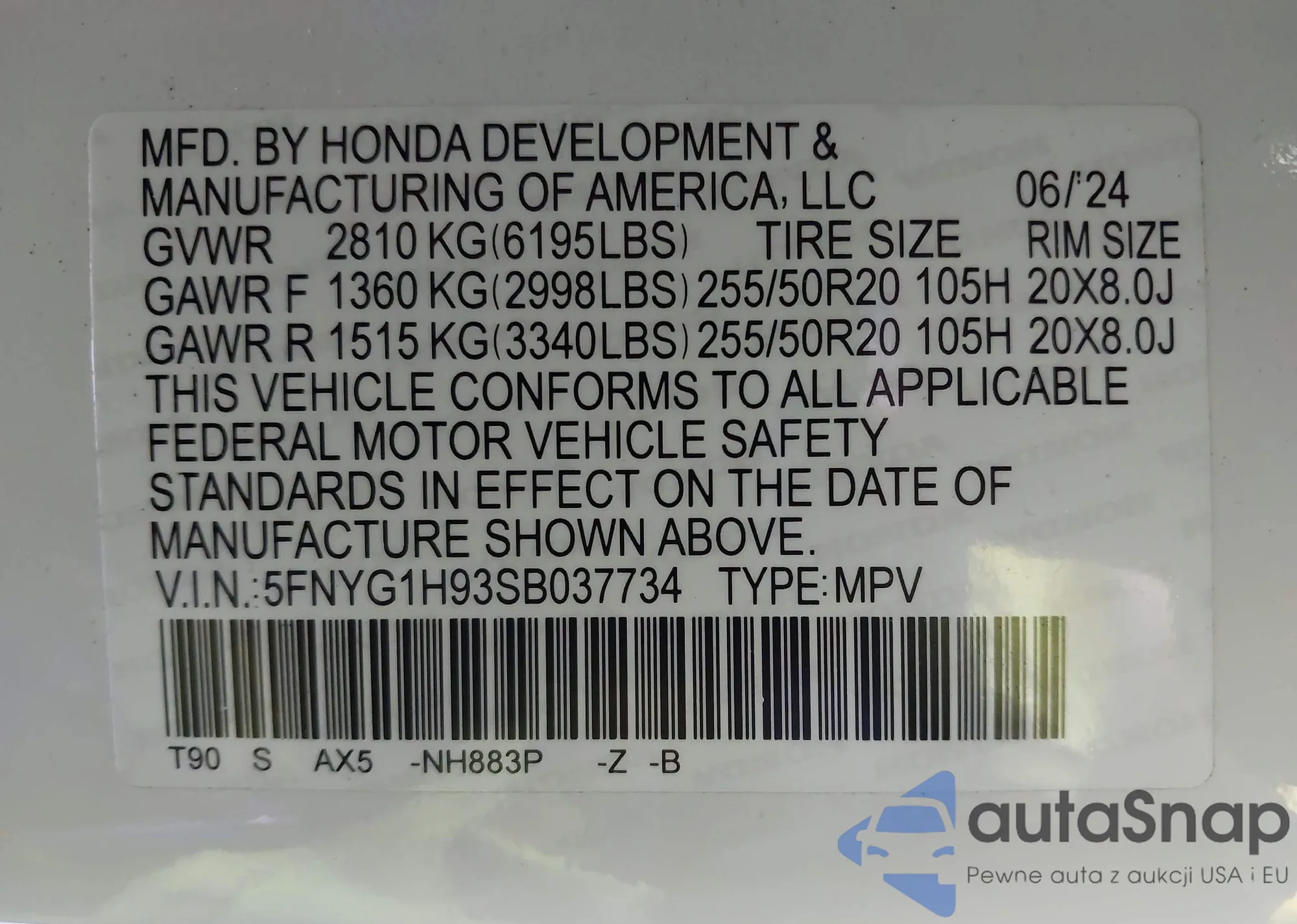 VIN: 05FNYG1H93SB03773