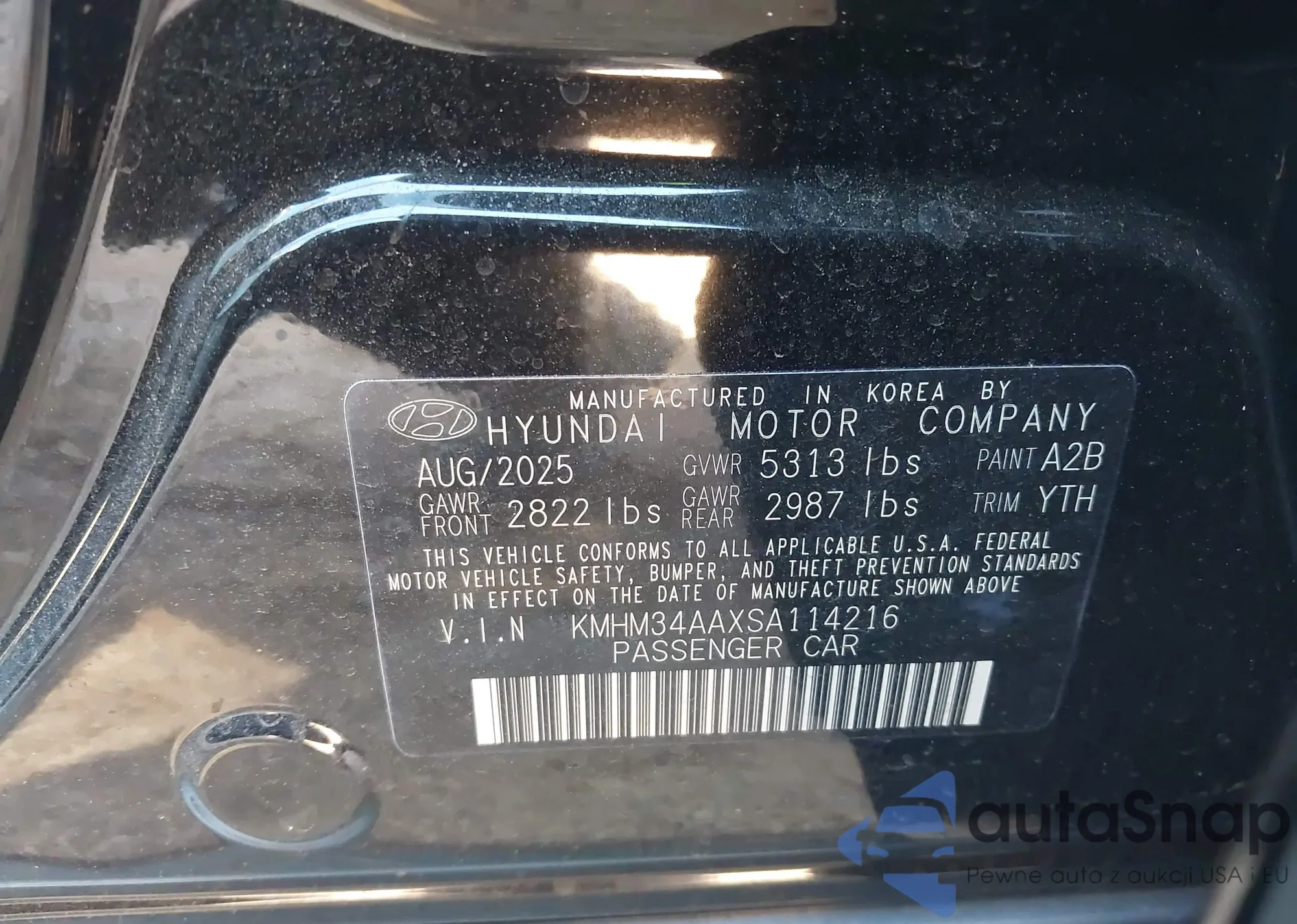 • VIN: KMHM34AAXSA114216