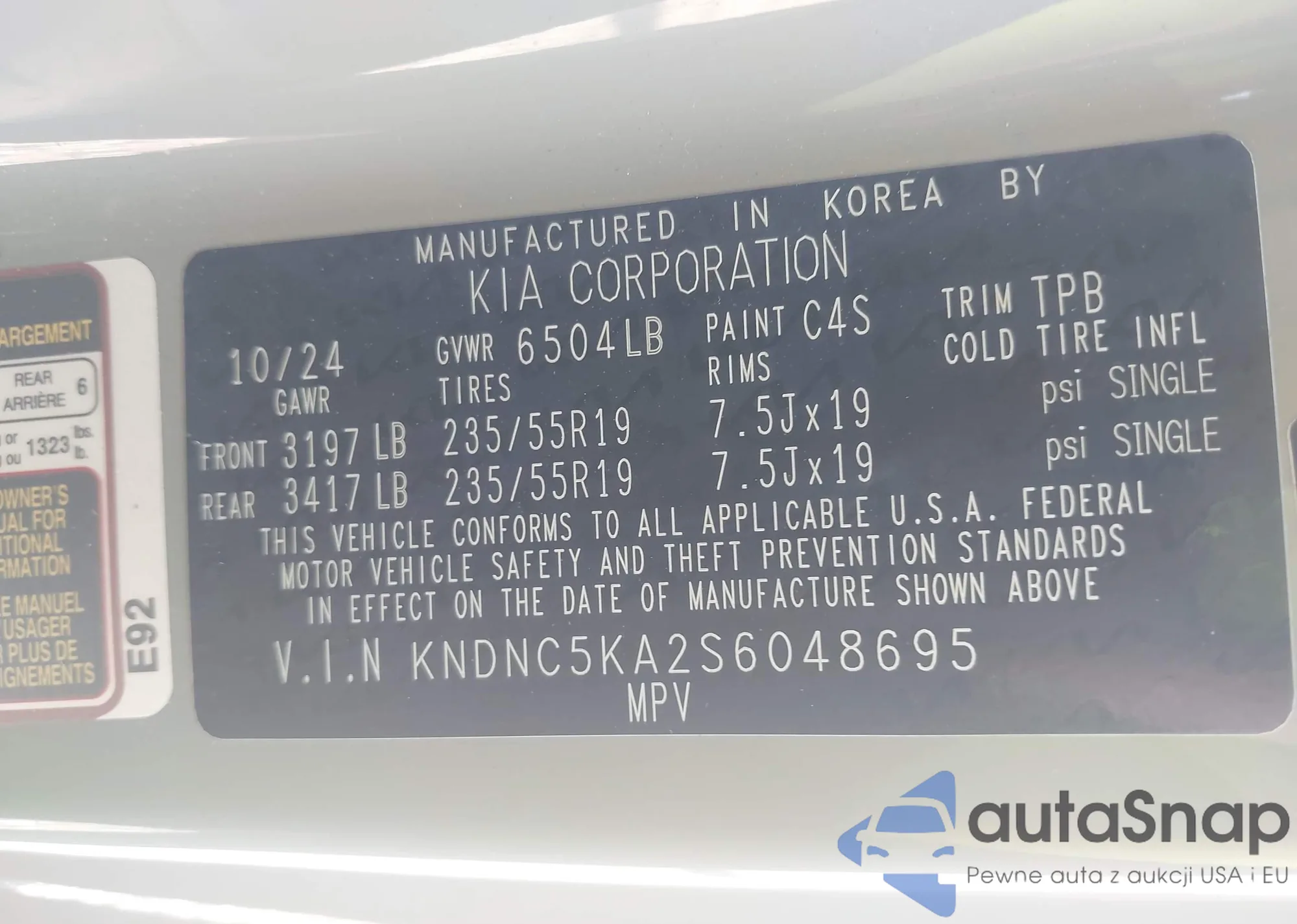 • VIN: KNDNC5KA2S6048695