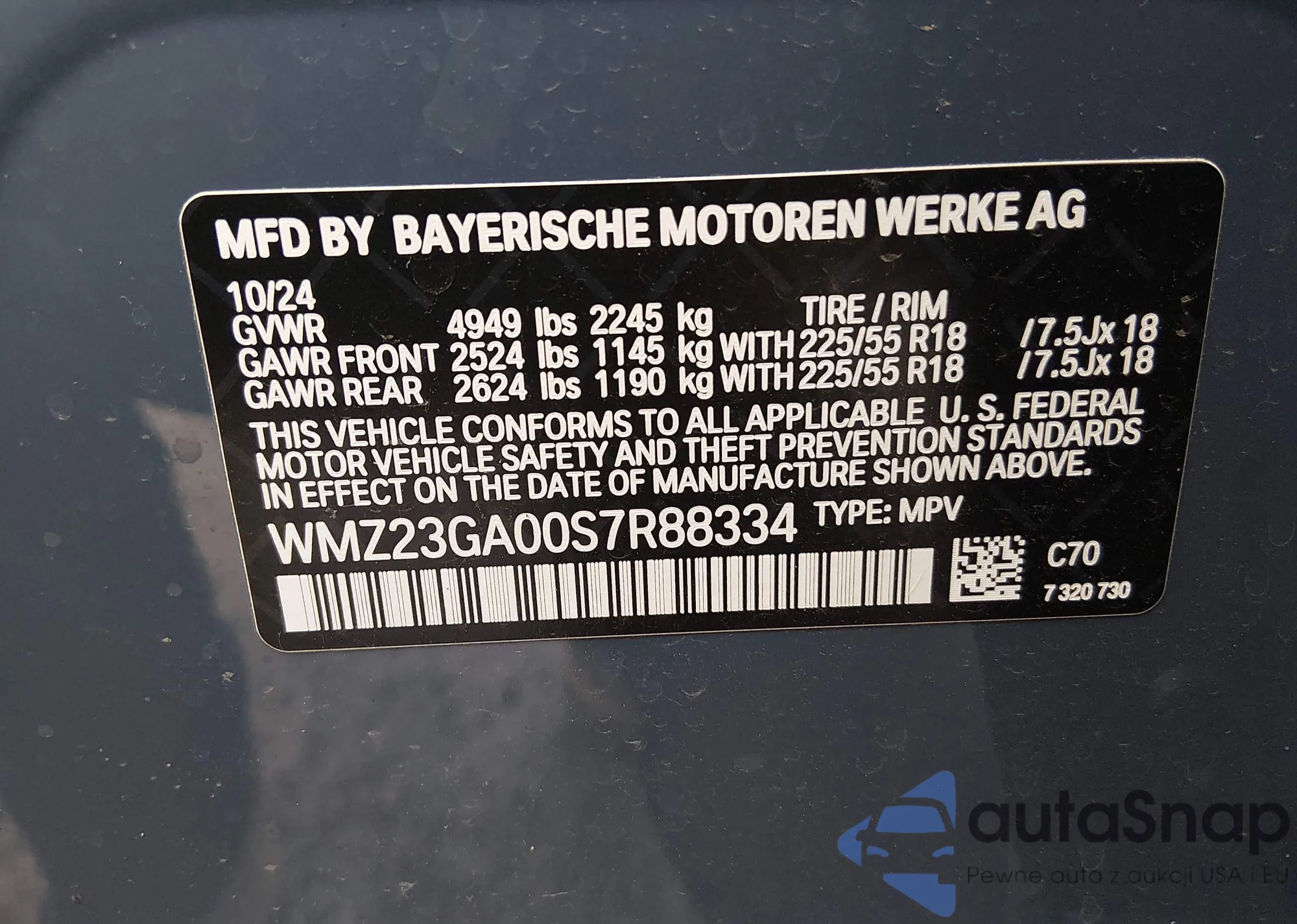 • VIN: WMZ23GA00S7R88334