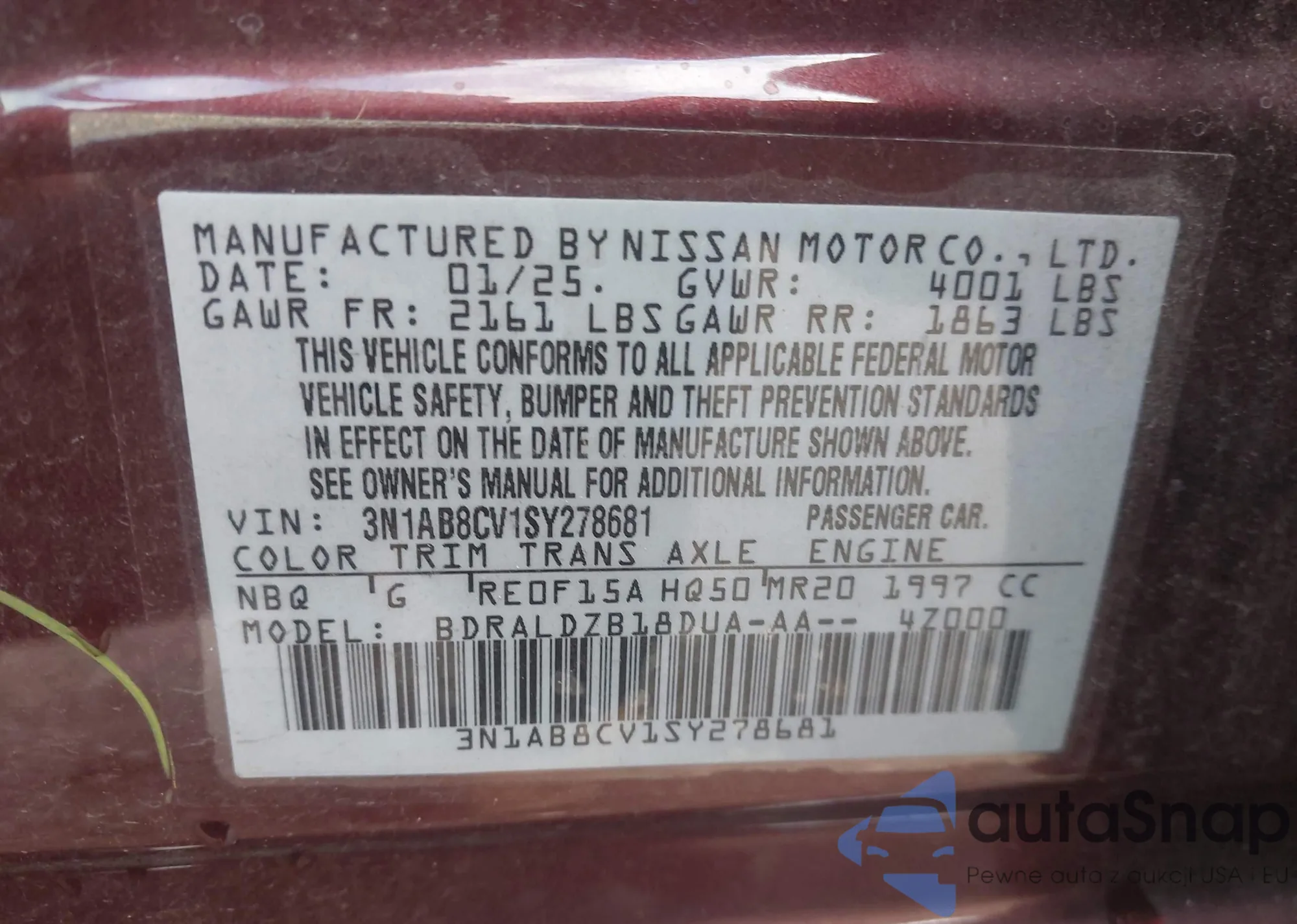 VIN: 3N1AB8CV1SY278681
