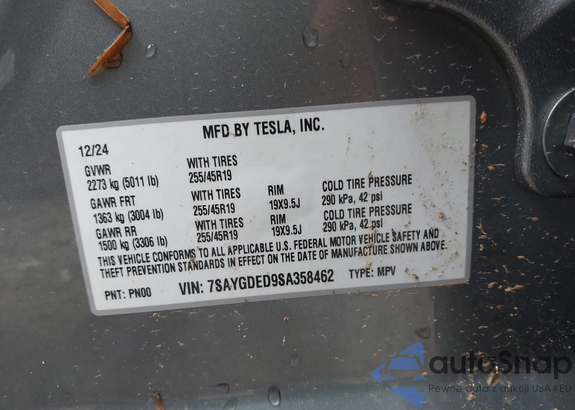 VIN: 7SAYGDED9SA358462