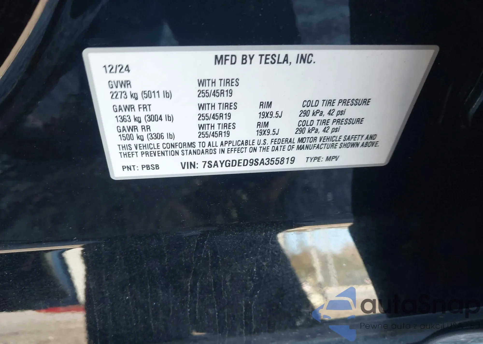 Samochód Tesla Model Y 2025 (VIN 7SAYGDED9SA355819) nie był wcześniej licytowany. Dokumenty są czyste, przebieg odpowiada lub jest niższy niż średnia rynku. Sprzedaje go firma ubezpieczeniowa – polecamy zakup. Dostawa do portu zajmie ok. 6–8 tygodni.